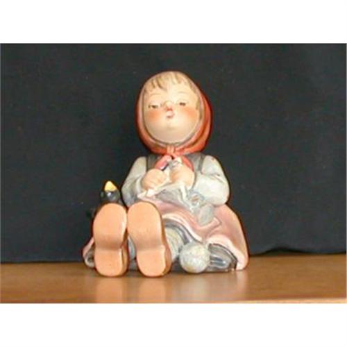 Doesn't this one call to you! This figurine is called "Happy Pastime". She measures approx. 3 1/4" in height and is a TMK-5. This figurine was modeled by master sculptor Arthur Moeller. This little girl is wearing a black and pink outfit and has a red kerchief on her head. She appears to be knitting! The bottom of the base does have some crazing but the figurine is in excellent condition. Appraisal priced at $225.00.