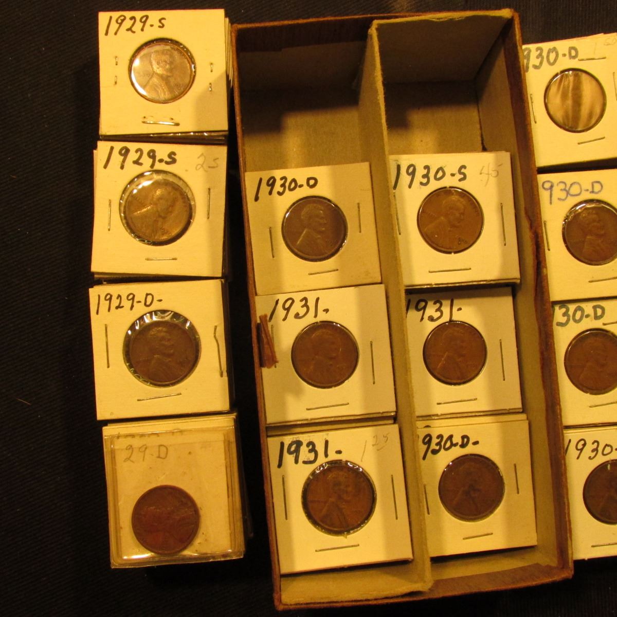 3 1/4" x 6 1/4" double row Stock Box full of Lincoln Cents in holders. Coins date 1929 D-31.
