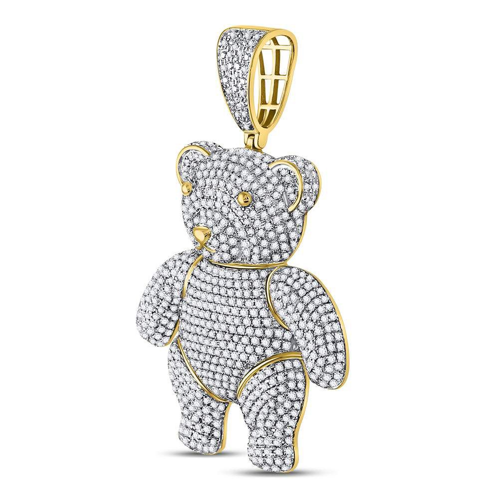 10kt Yellow Gold Mens Round Diamond Teddy Bear Charm Pendant 3-1/5 Cttw