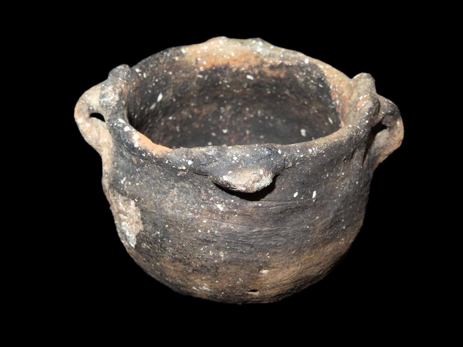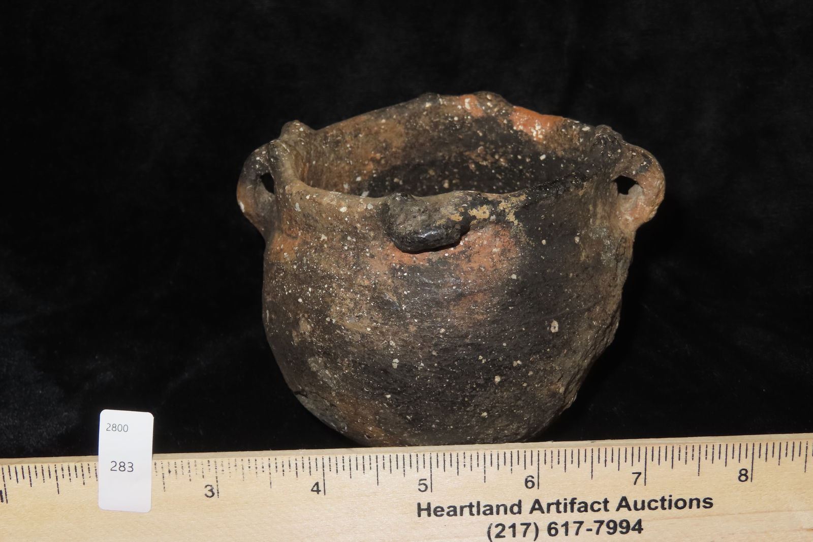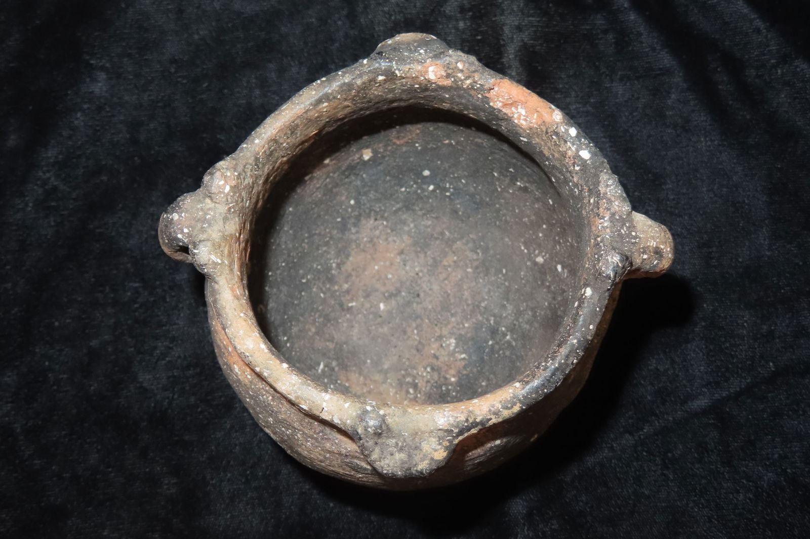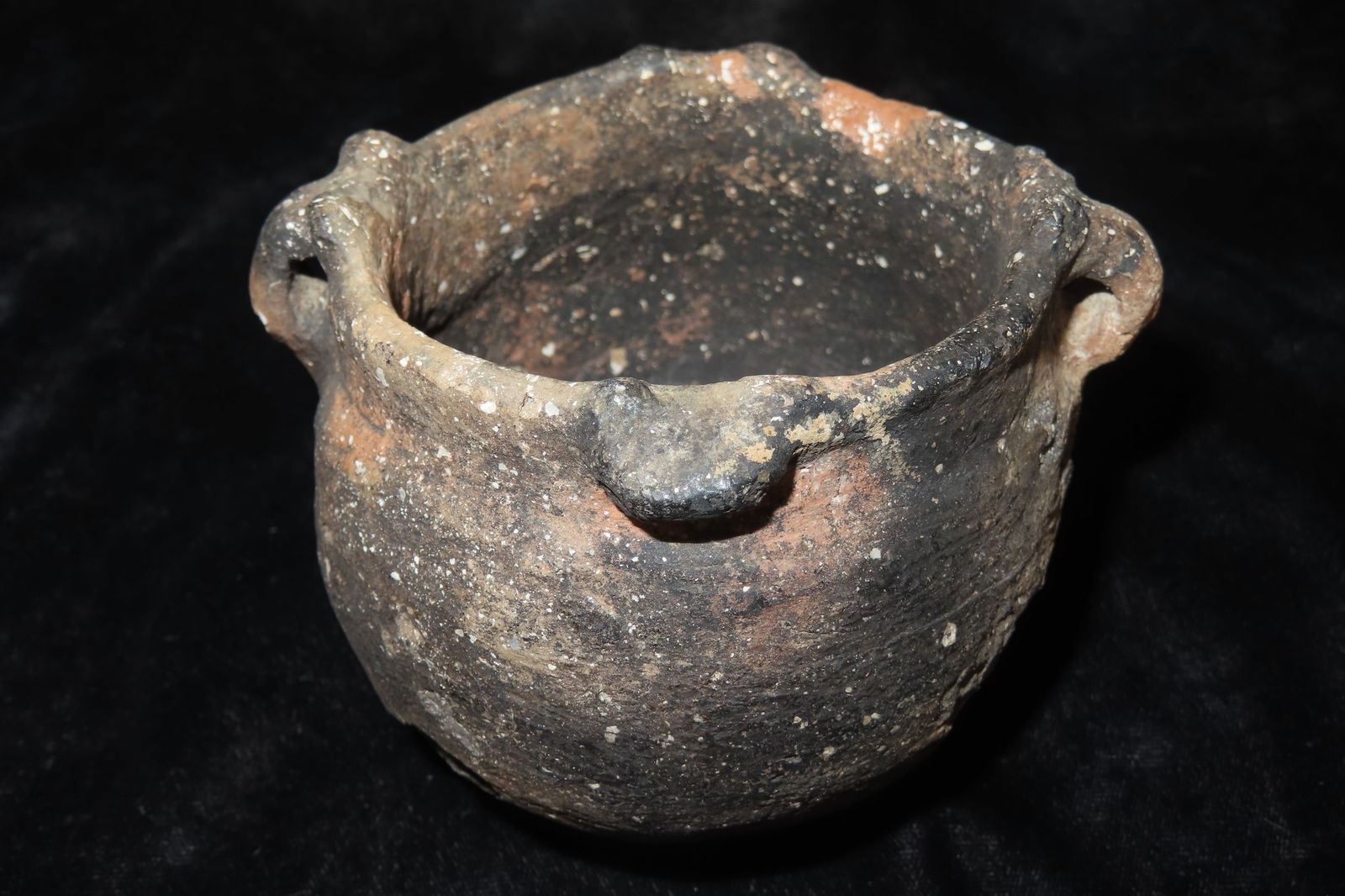 3 1/8& quot; Pottery Jar found in Southern Missouri with 2 lug handles and 2 strap handles
