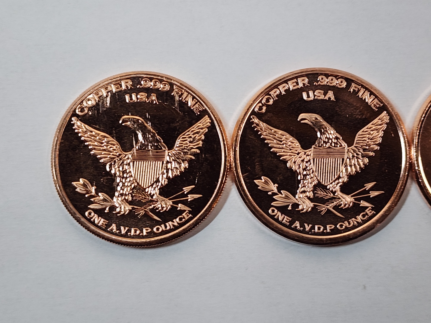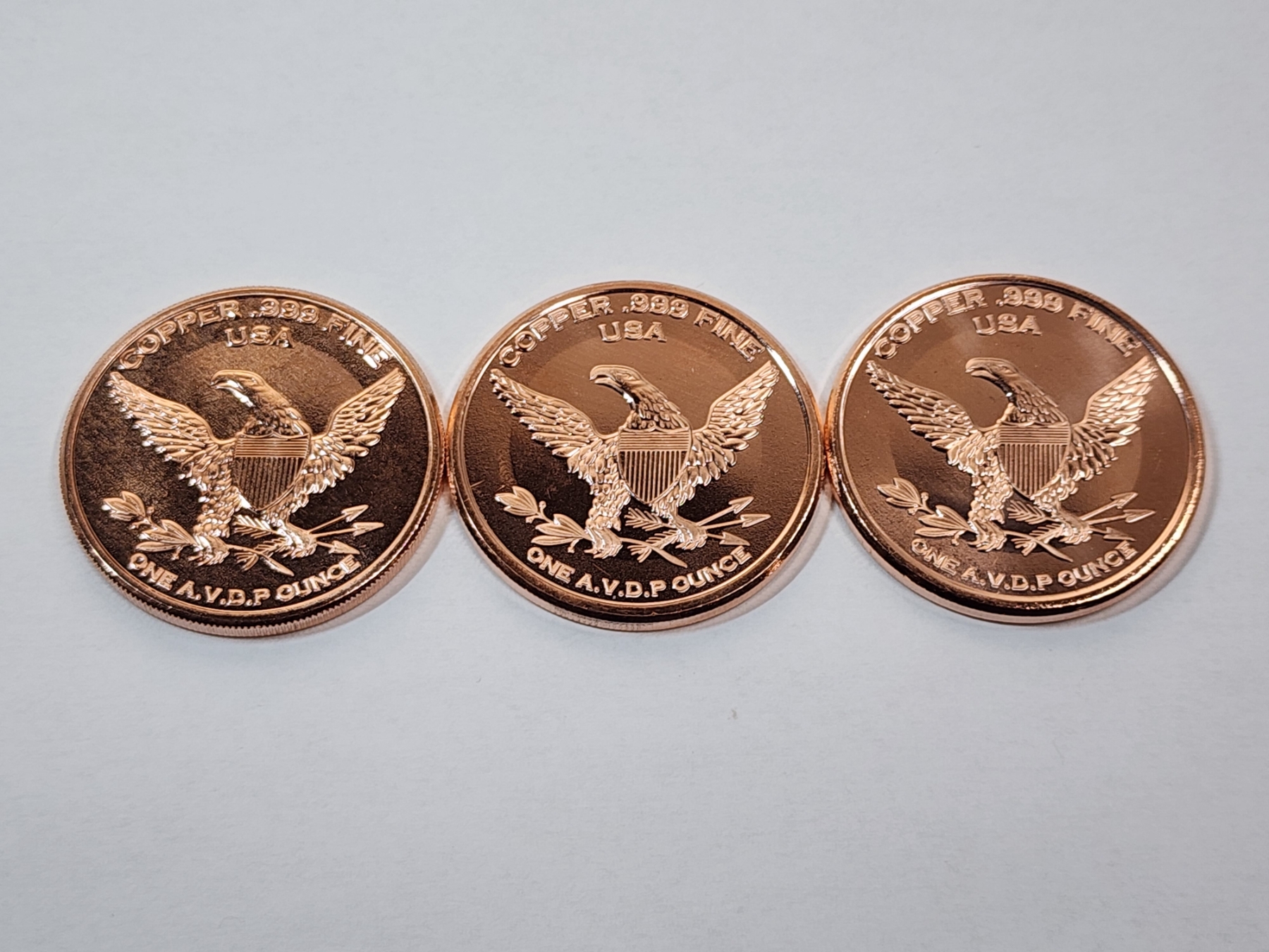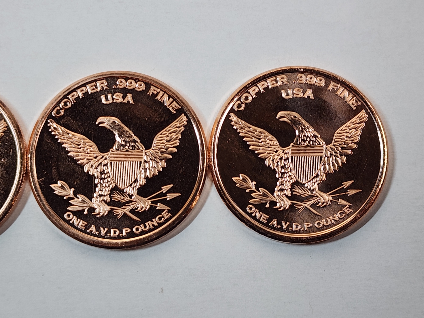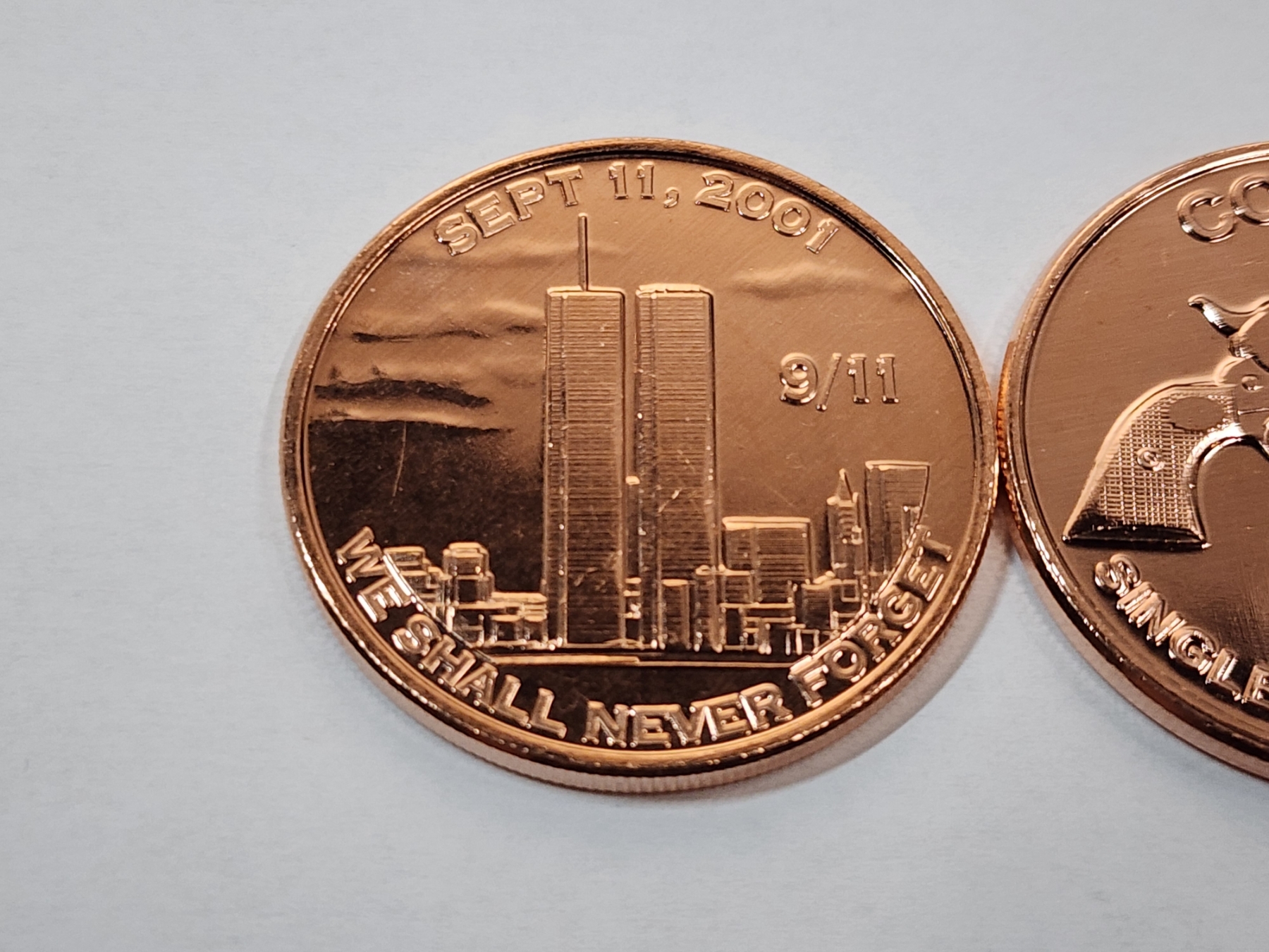 3 - 1 AVDP Ounce .999 Fine Copper Rounds: 9/11, Colt 45, & M16 Rifle Designs (3 oz Total) Mint Cond.