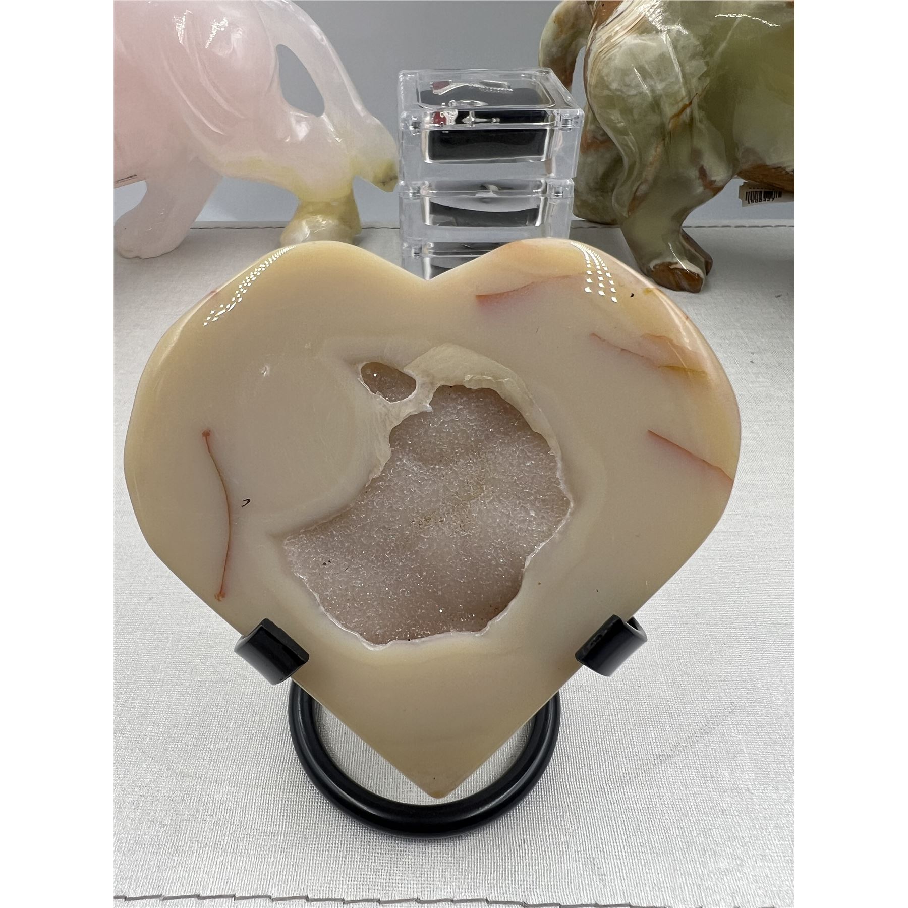 3.1 INCH AGATE SLICE HEART WITH DRUZY