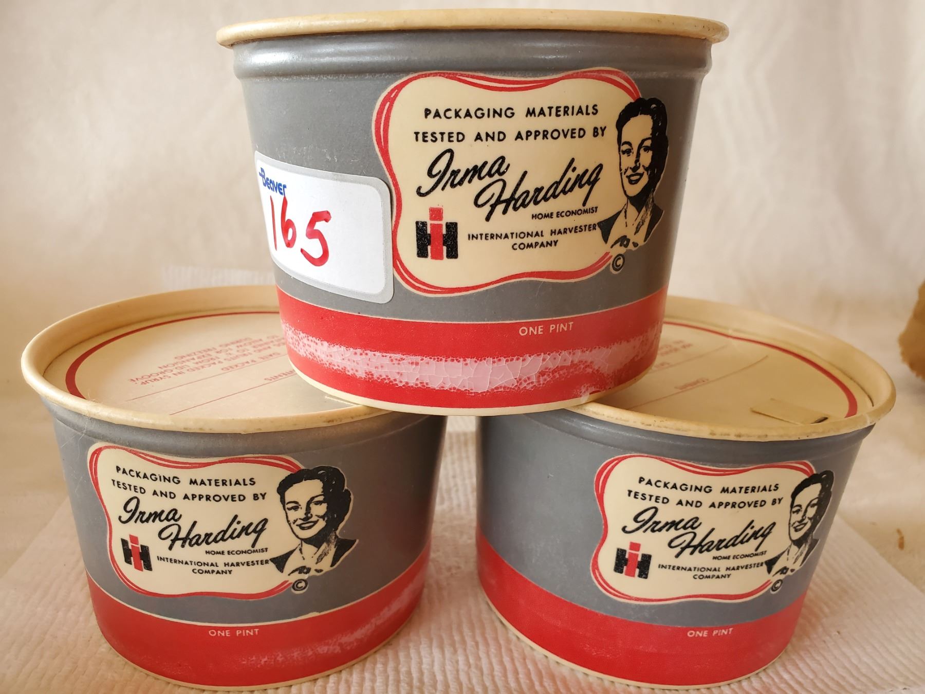 3 - 1 PINT N.O.S. CONTAINERS MADE BY DIXIE CUP CO. FOR IHC (1950's)