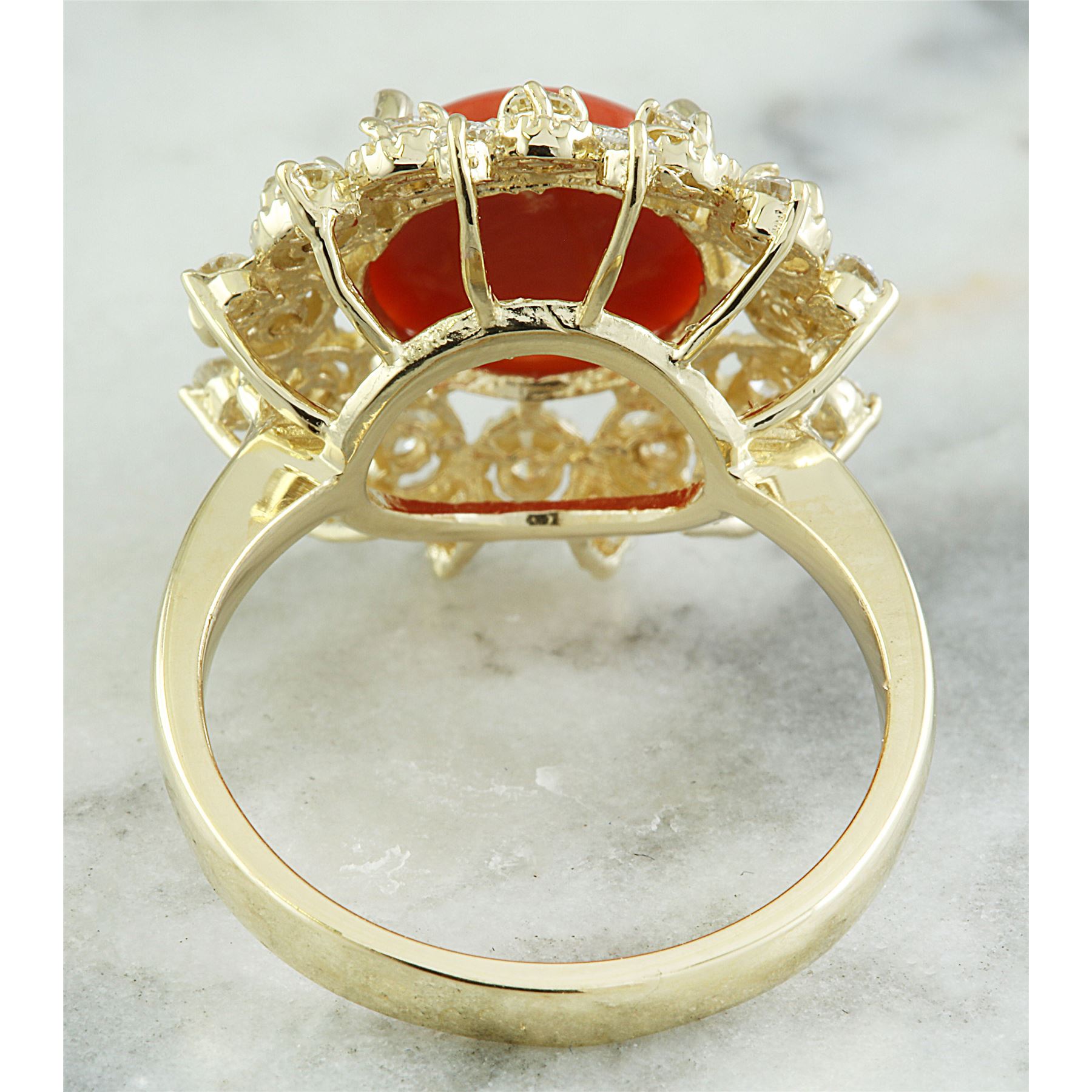 3.10 CTW Coral 18K Yellow Gold Diamond Ring