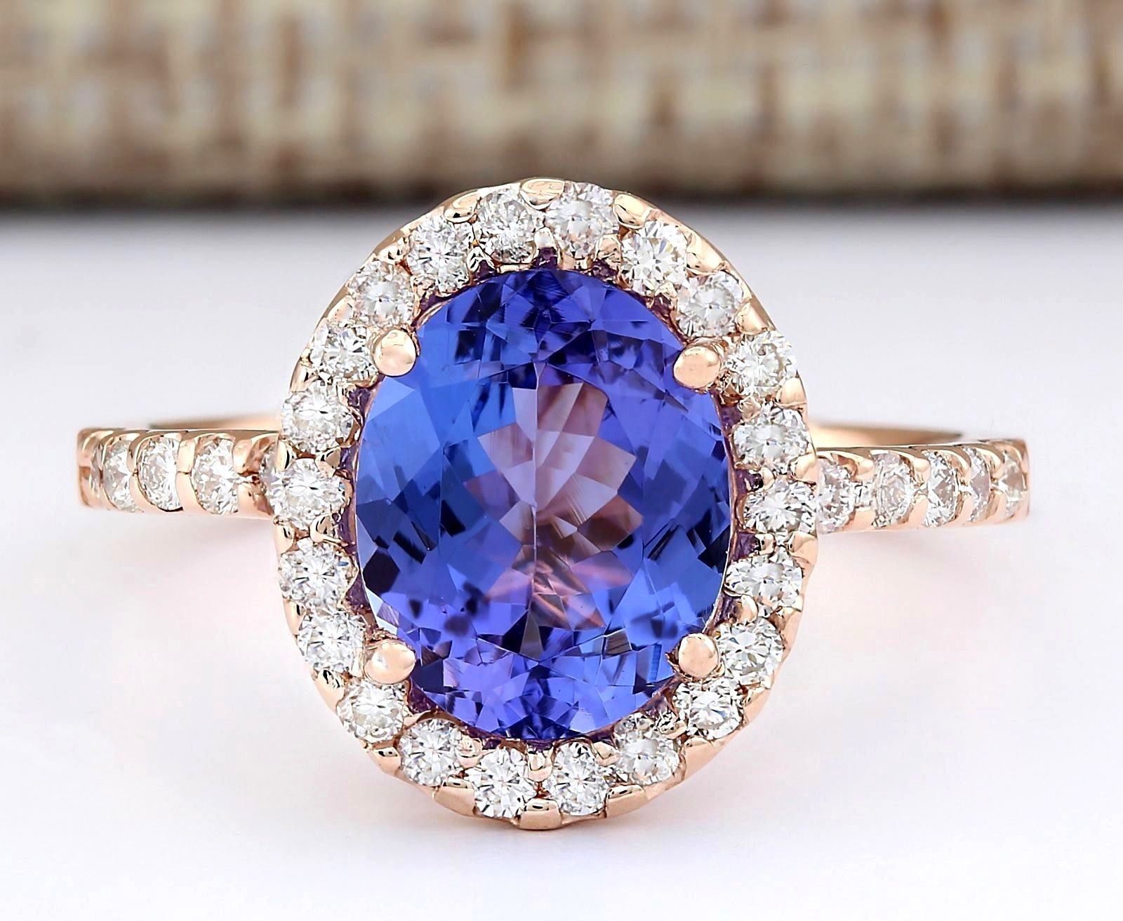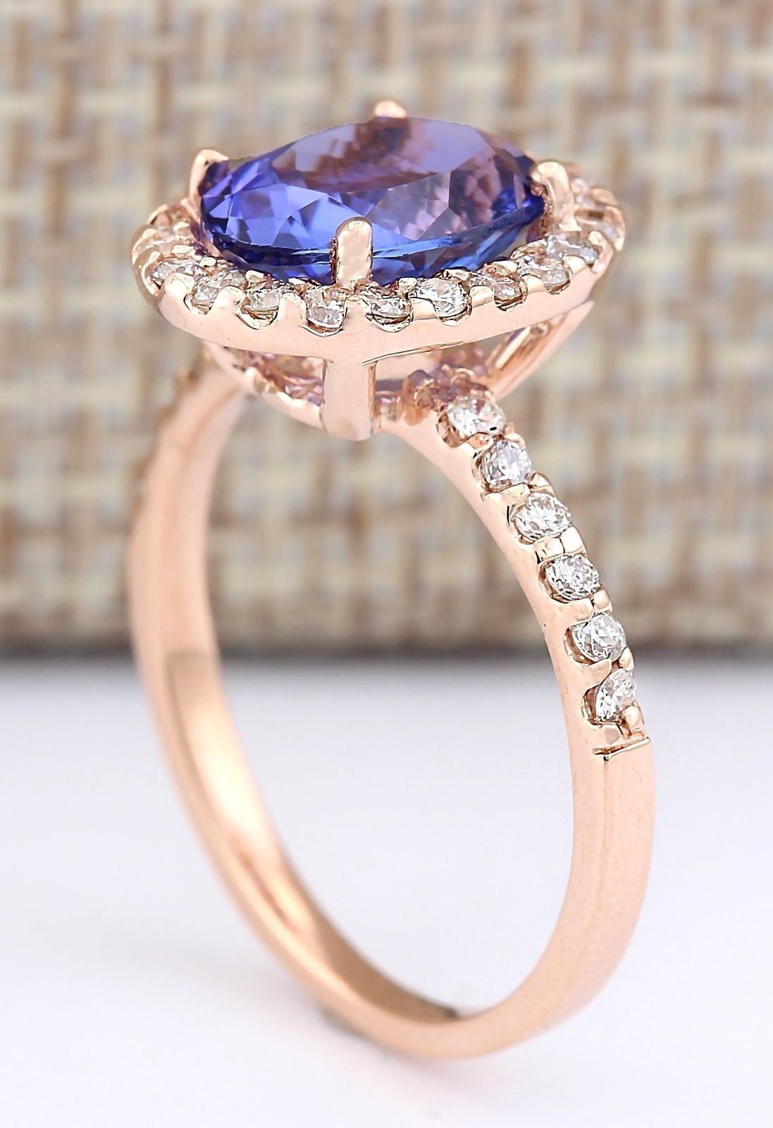 3.10 CTW Natural Tanzanite And Diamond Ring In 14k Rose Gold
