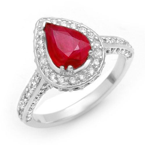 REF-89N5Y -10702 ---- 3.10 CTW Ruby & Diamond Ring 14K White Gold ---- Luxury Designer Brand Ring Appraised at $6,400 Certificate Number US10702 14k White gold, Ring Size is 7, Ring measuring approx. 1/2" x 3/4" , weighing in total approx. 6.1 grams. Made in the USA and is stamped 14k, Main stone 2 carat total weight containing 1 pieces of Mid-Opaque-Deep Red color with AAA quality Pear shape cut Ruby , Stone #2 1.1 carat total weight containing 106 pieces of H-I color with VS/SI quality Round shape cut Diamond