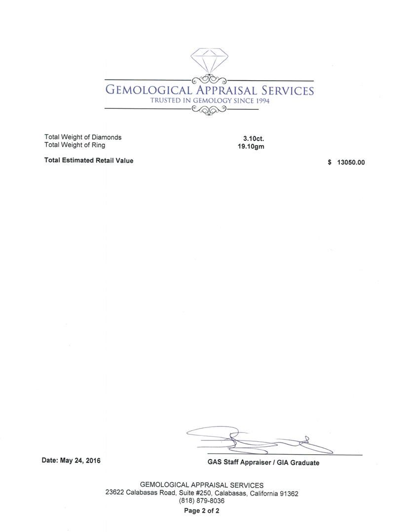 Regarding Appraised Jewelry, Watches and Loose Stones –