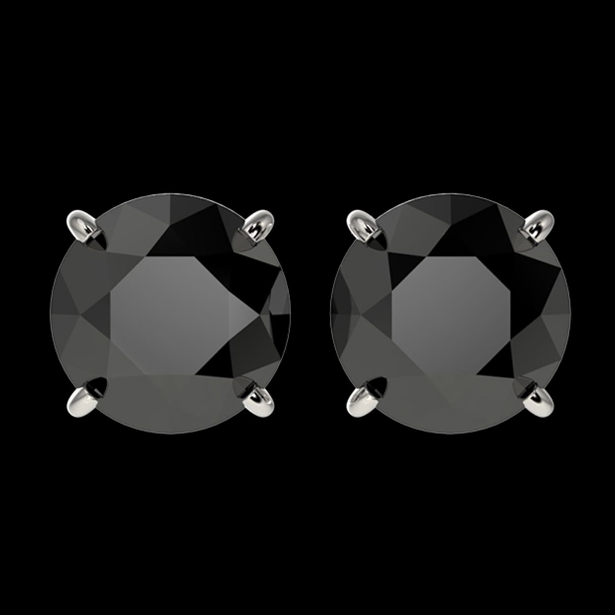 3.10 ctw Fancy Black Diamond Solitaire Stud Earrings 10K White Gold