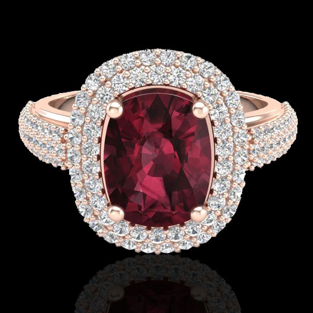 REF-100X2A - SKU: 20711 ---- 3.10 ctw Garnet & Micro Pave VS/SI Diamond Certified Ring 10k Rose Gold