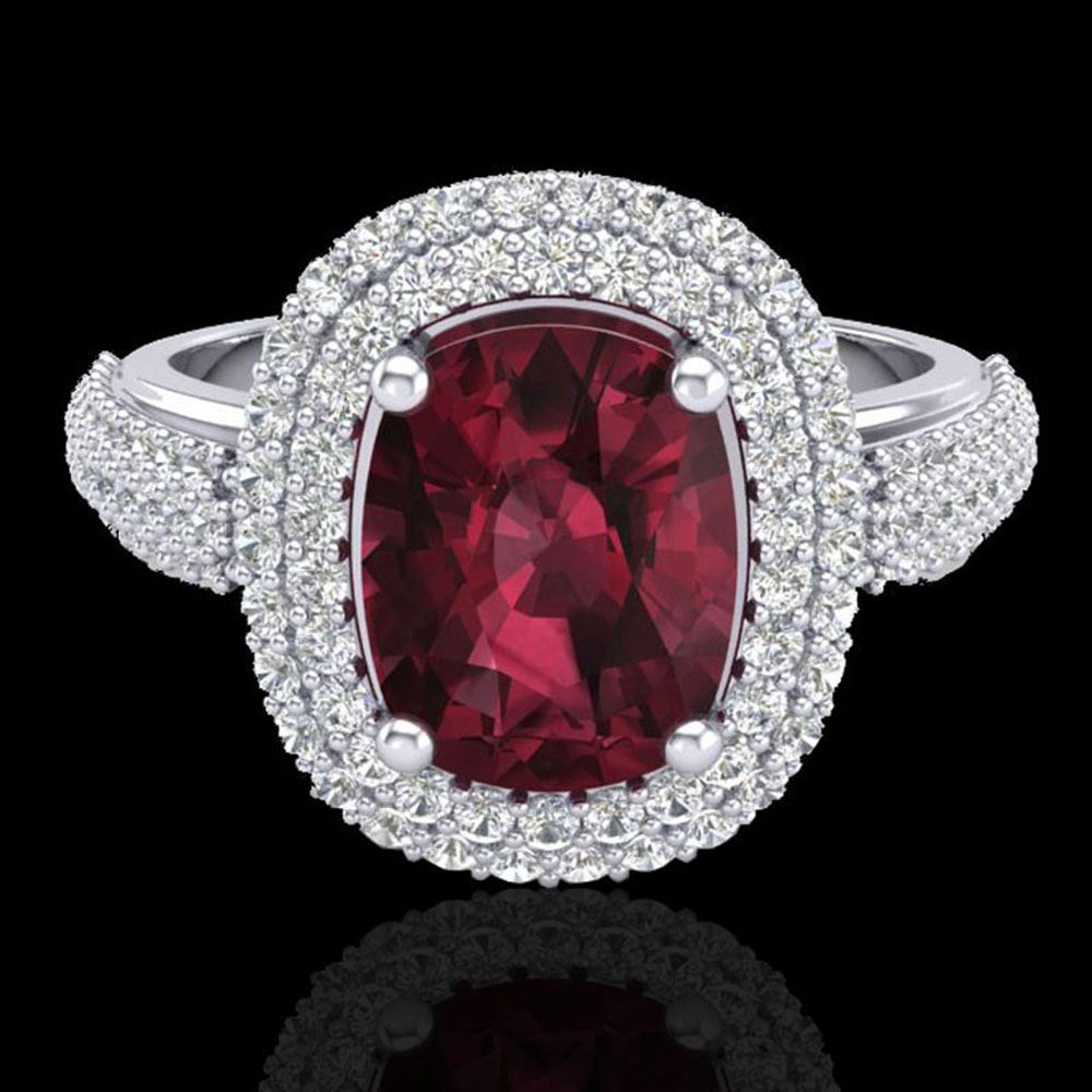 REF-100N2F - SKU: 20712 ---- 3.10 ctw Garnet & Micro Pave VS/SI Diamond Certified Ring 10k White Gold