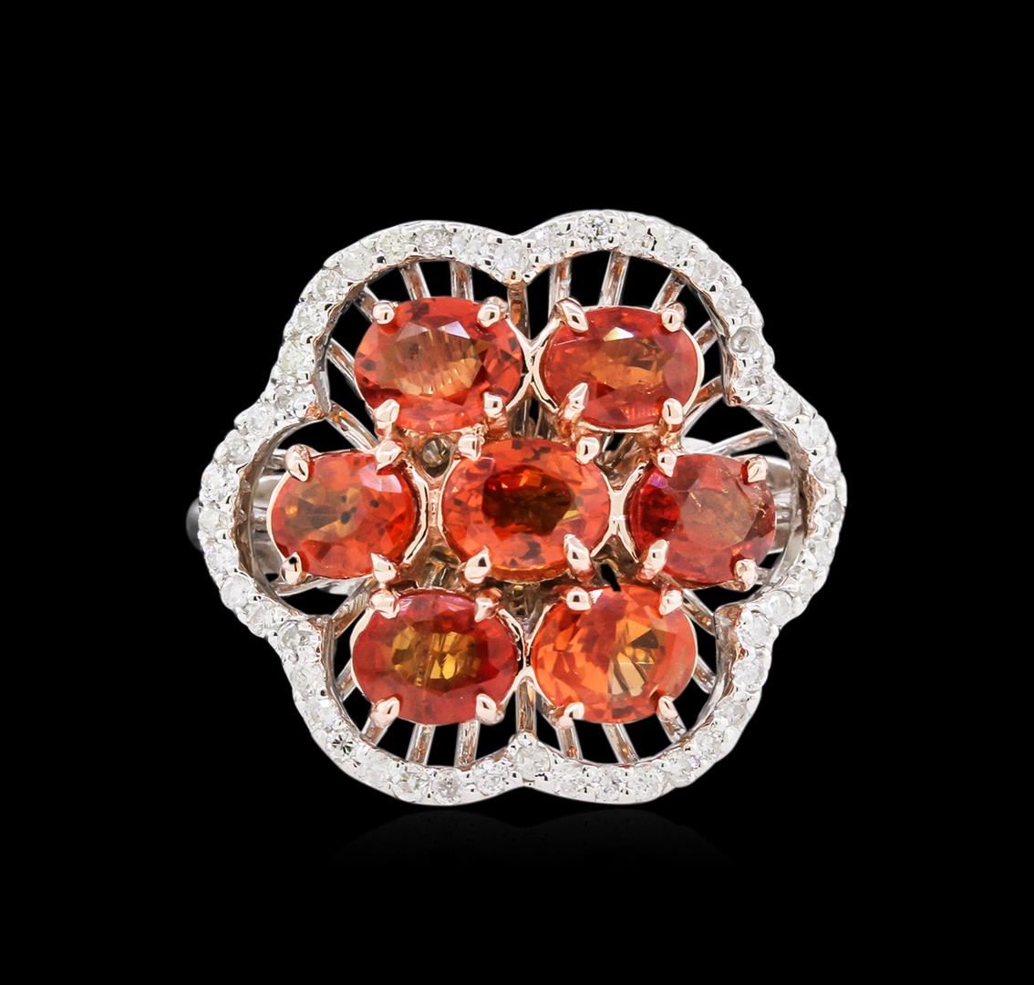 One ring featuring: 14KT white and yellow gold weighing 5.66 grams containing 7 sapphires with a total weight of 3.10ct and diamonds with a total weight of 0.28ct.