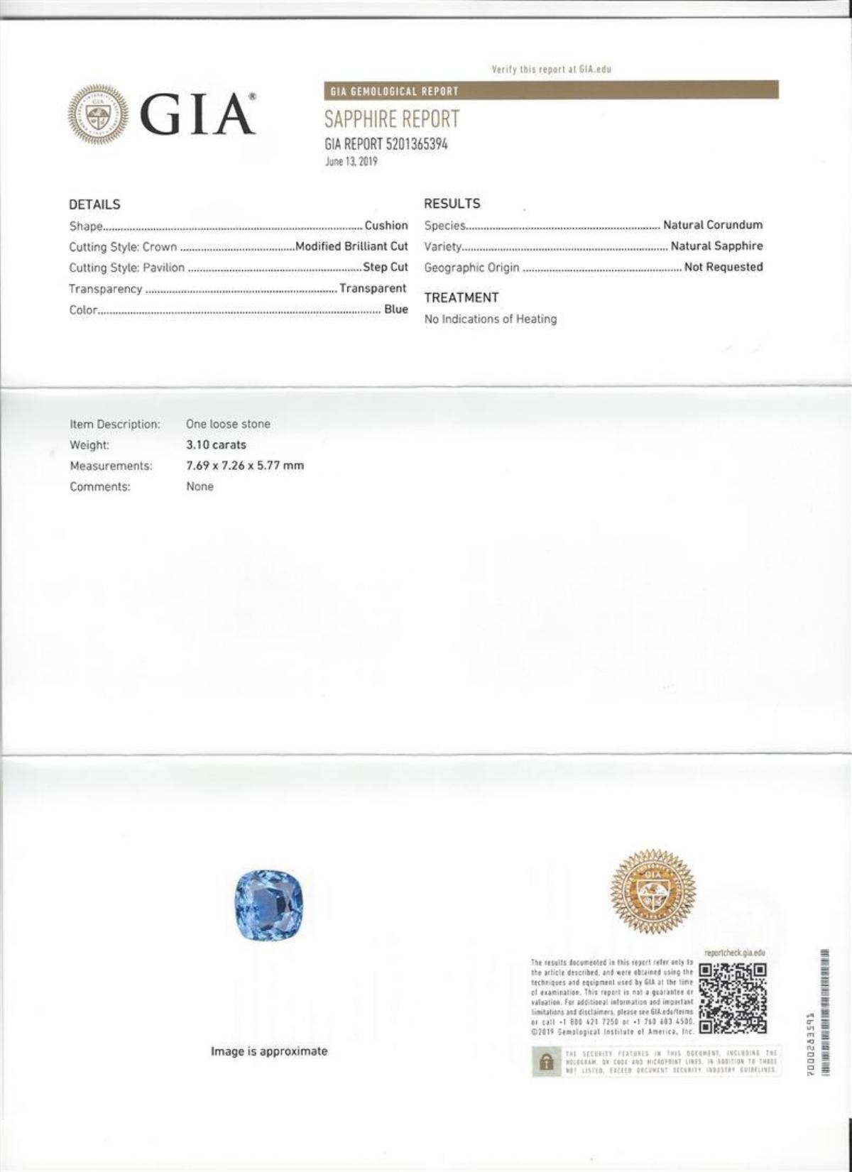 One 3.10ct Sapphire and Diamond Ring - Platinum. AIG certified. See Appraisal for more details. AIG Appraised.