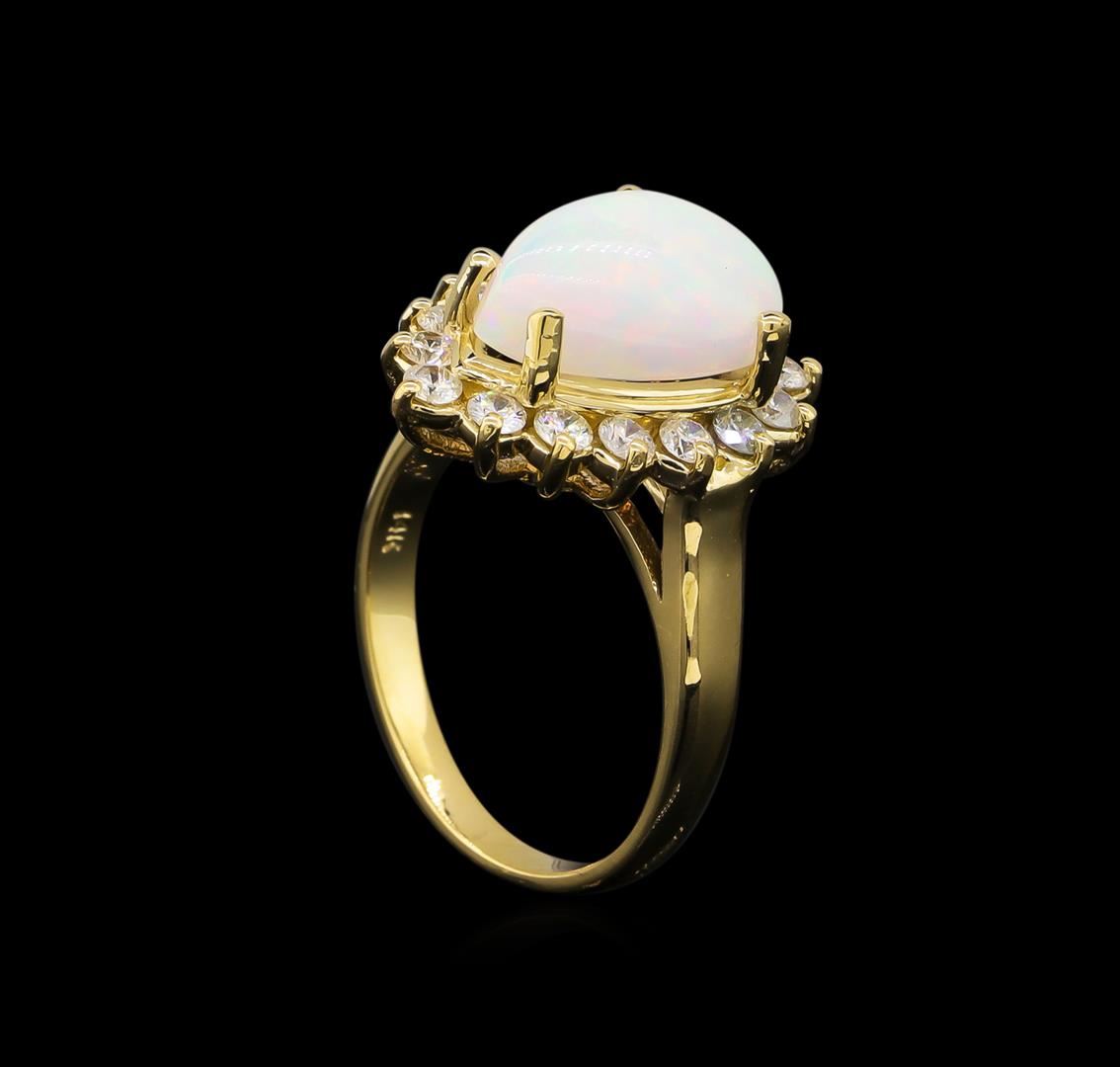 One ring featuring: 14KT yellow gold weighing 5.56 grams containing one opal with a total weight of 3.10 and side diamonds with a total weight of 3.80ct.