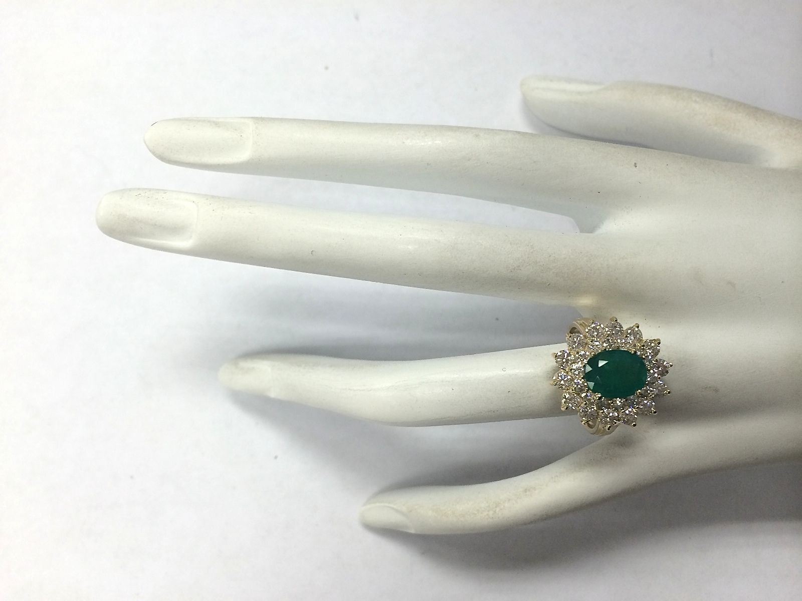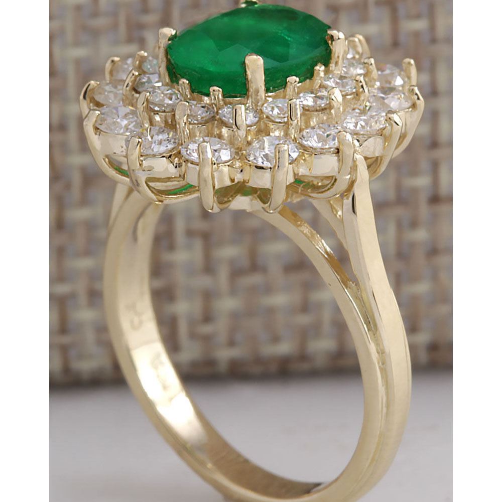 3.11 CTW Natural Emerald And Diamond Ring 14K Solid Yellow Gold