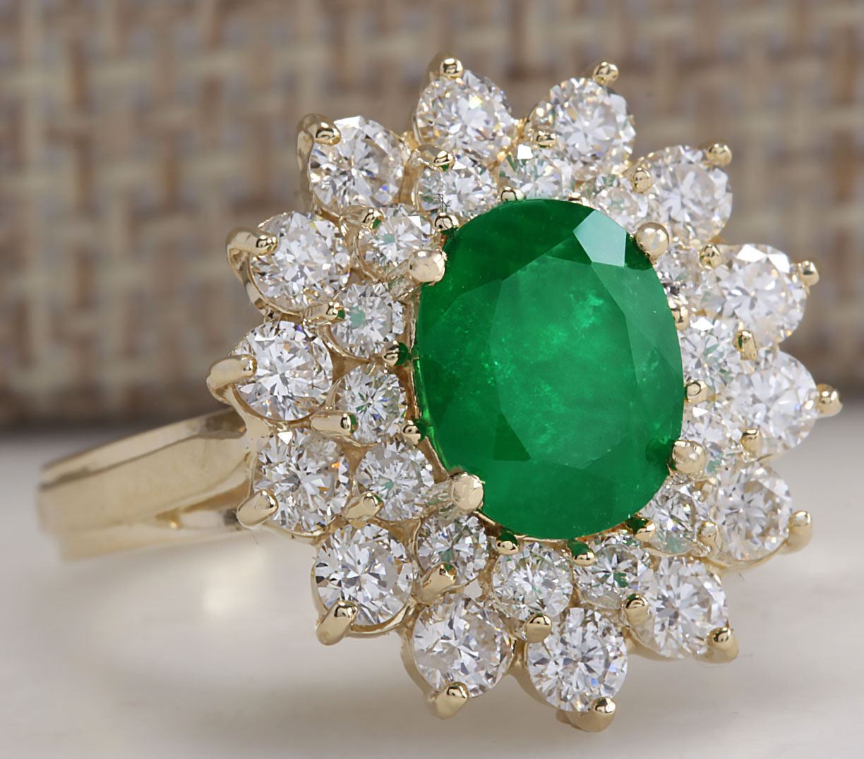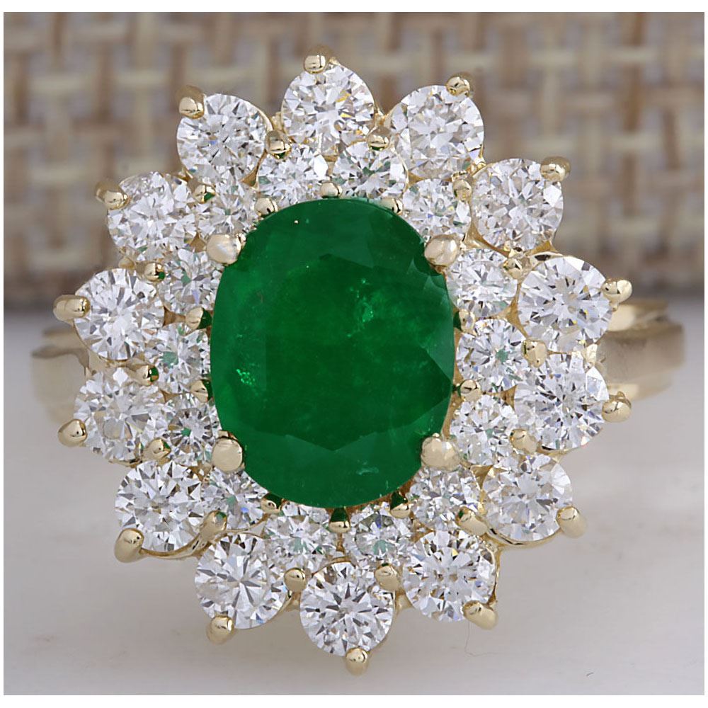 3.11 CTW Natural Emerald And Diamond Ring 18K Solid Yellow Gold
