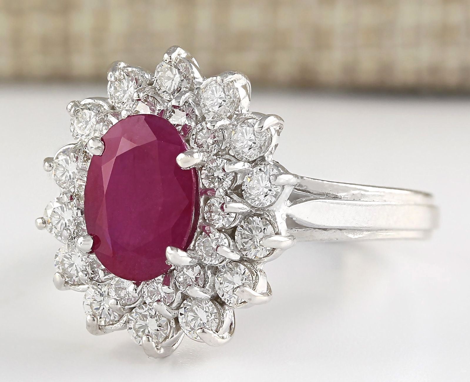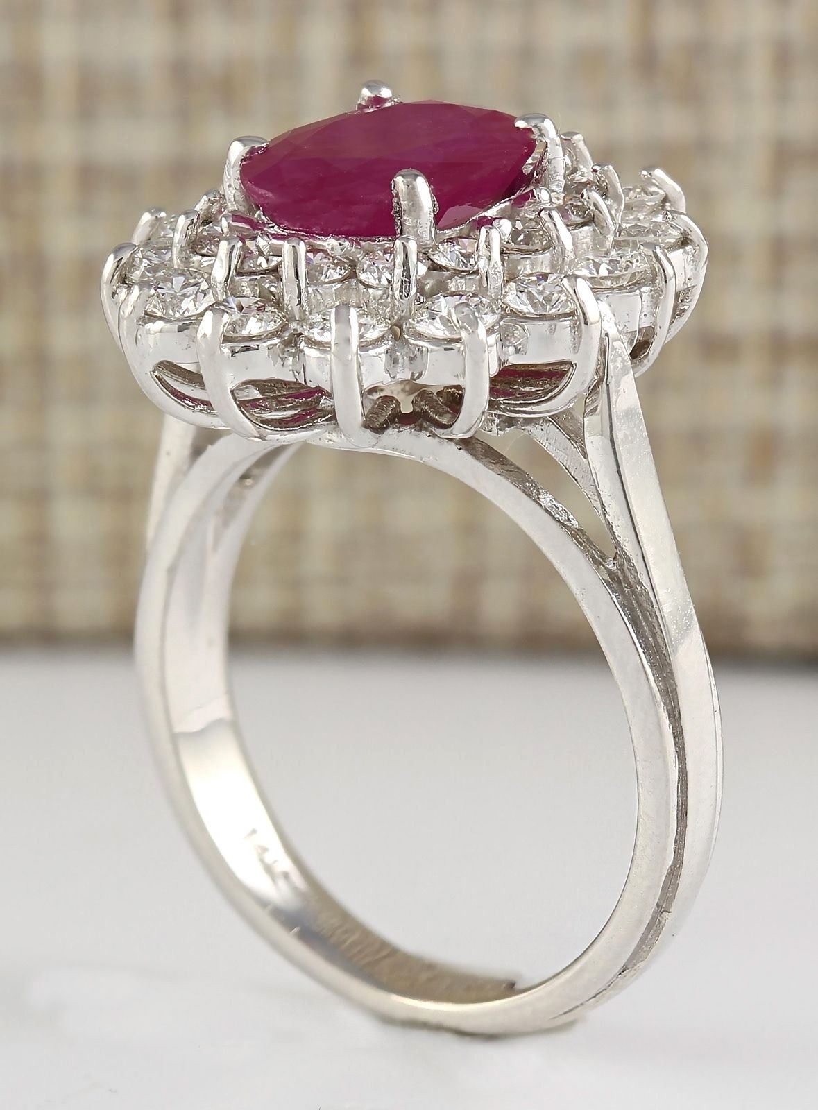 3.11 CTW Natural Ruby And Diamond Ring In 14k White Gold