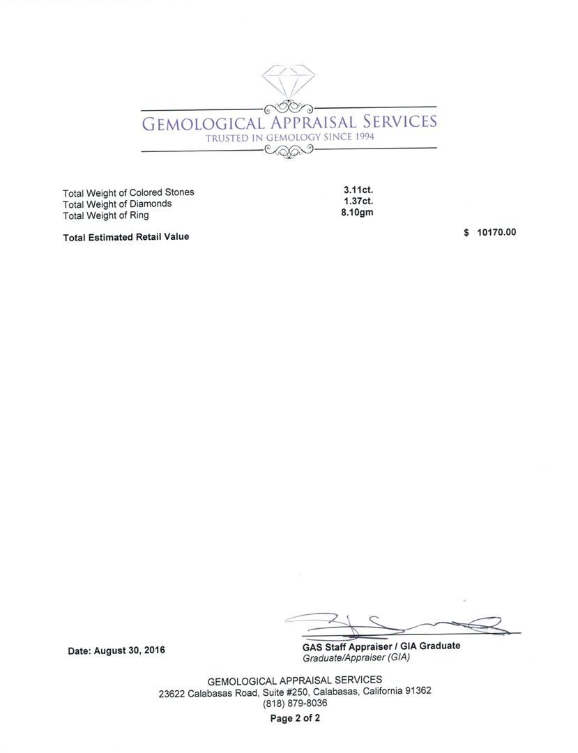 Not all Jewelry, watches or loose stones are appraised and the appraisals are provided for bidders only in certain instances at the discretion of SAA. Our appraisals are conducted by independent third-party appraisal firms. Such firms may be certified GIA Gemologists or have education in the industry or alternative certifications. Appraisals should be used for verification of gemstone and/or metal weight, size, and grade only, not actual value for resale or insurance purposes. Appraisal value should be not considered for actual value, as price varies greatly from retail locations and other merchants in different geographic locations. All Items auctioned by SAA should not be purchased with a view or expectation toward resale for appraisal price given, or to make a profit. The ultimate value for which an item can be resold may vary drastically from the appraisals listed by SAA.