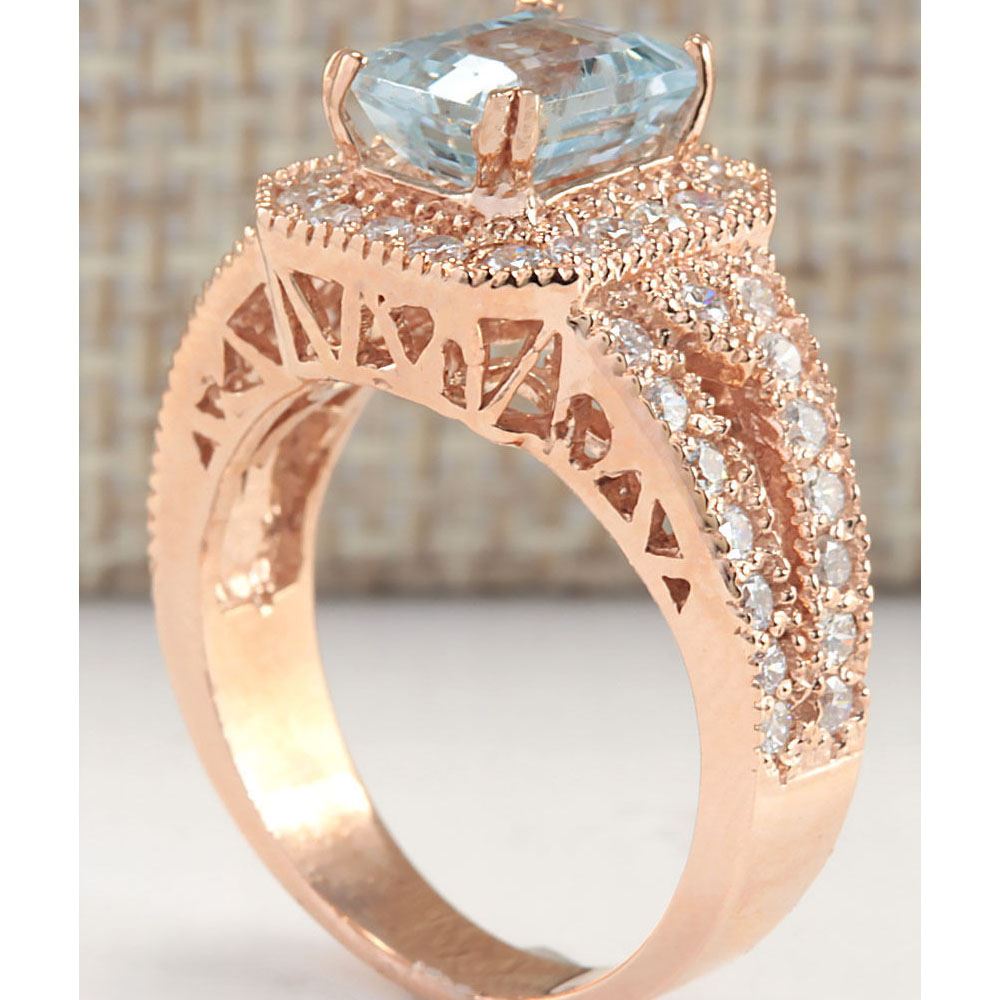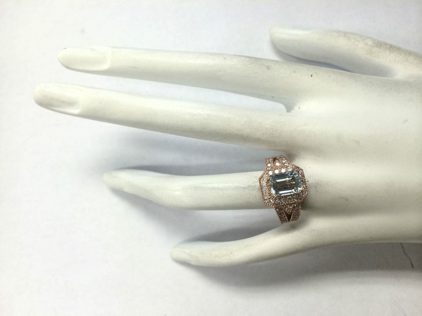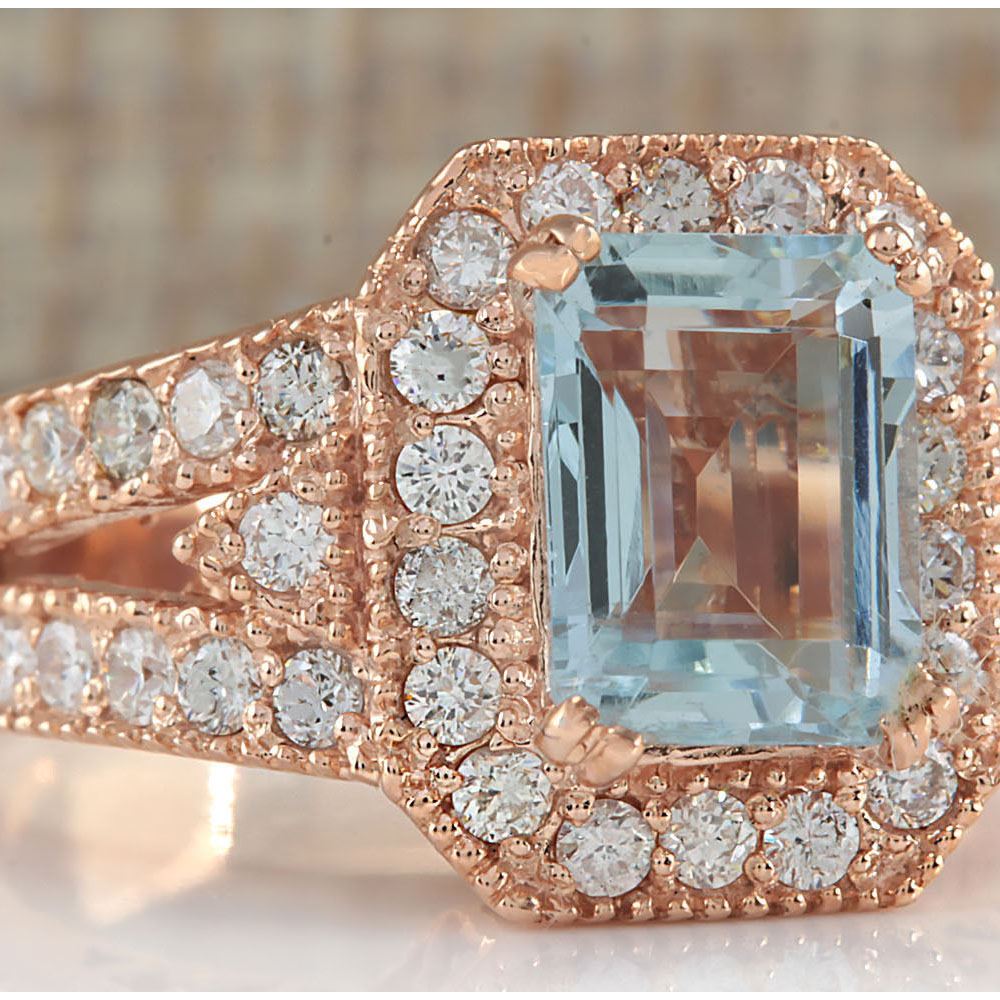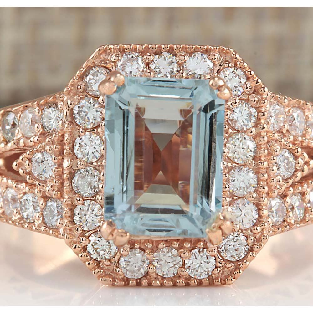 3.12 CTW Natural Blue Aquamarine Diamond Ring 14K Solid Rose Gold