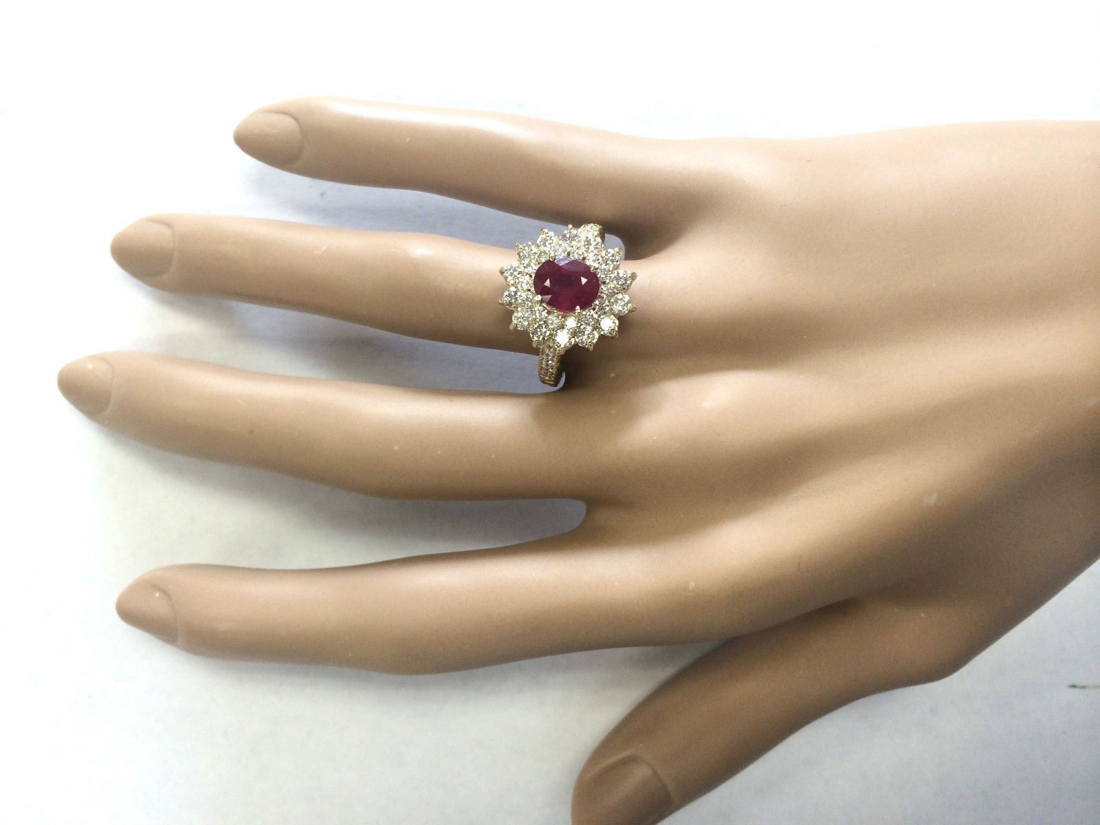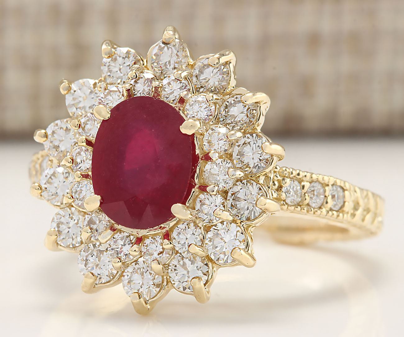 3.12 CTW Natural Ruby And Diamond Ring In 14k Yellow Gold