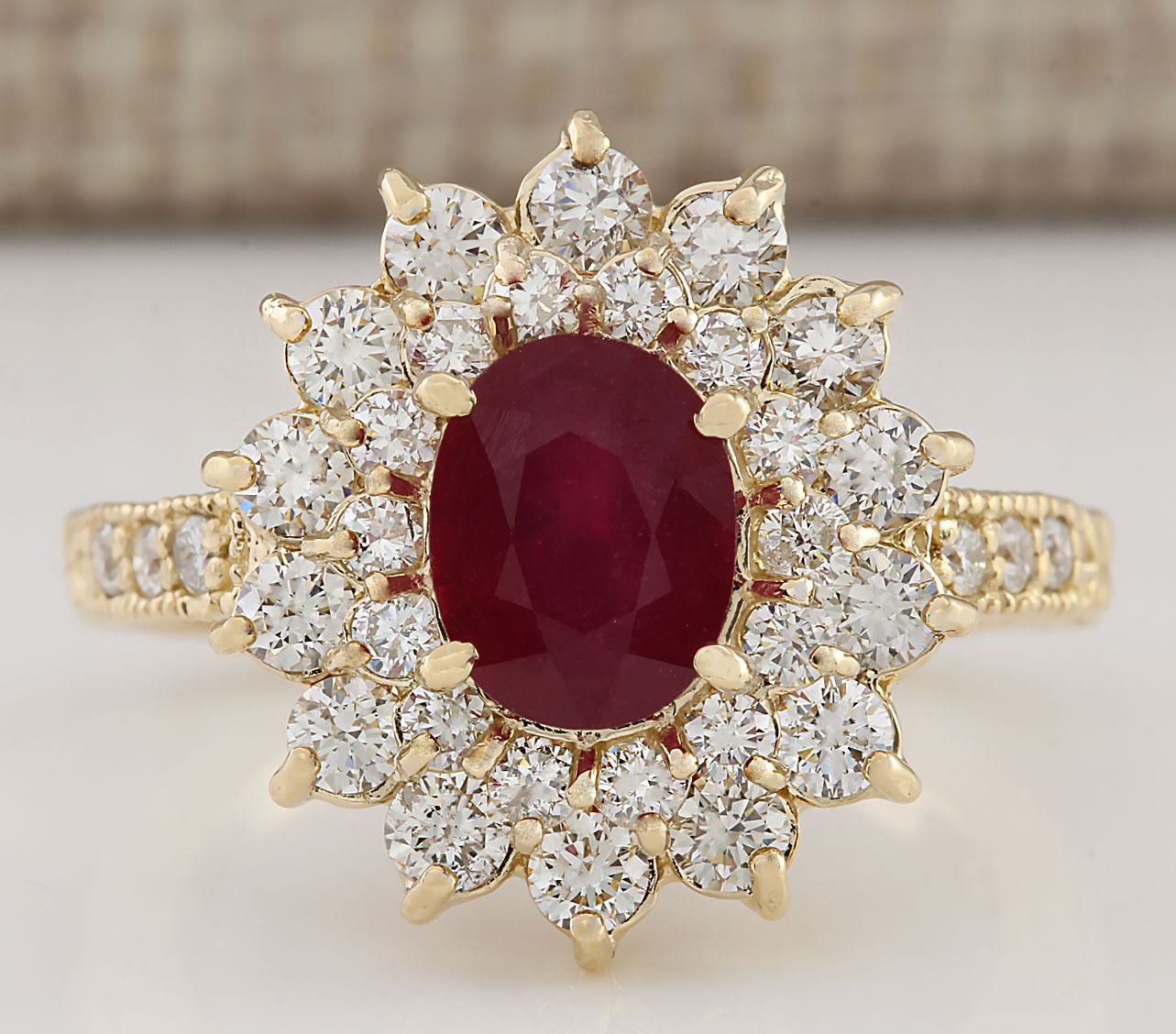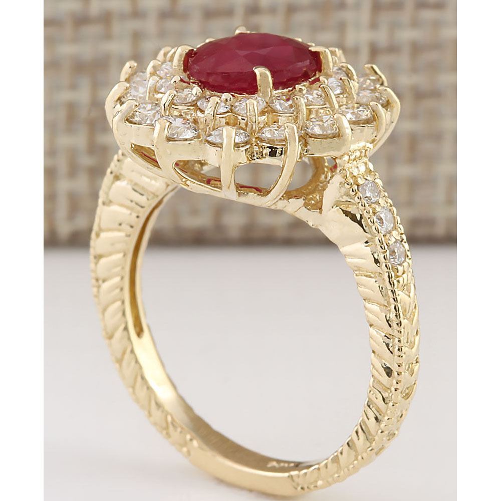 3.12 CTW Natural Ruby And Diamond Ring In 14k Yellow Gold