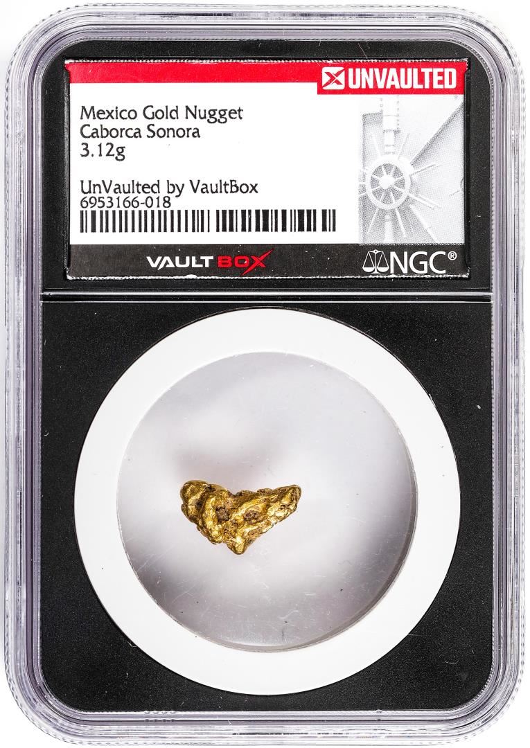 3.12 Gram Caborca Sonora Mexico Gold Nugget NGC Vaultbox Unvaulted