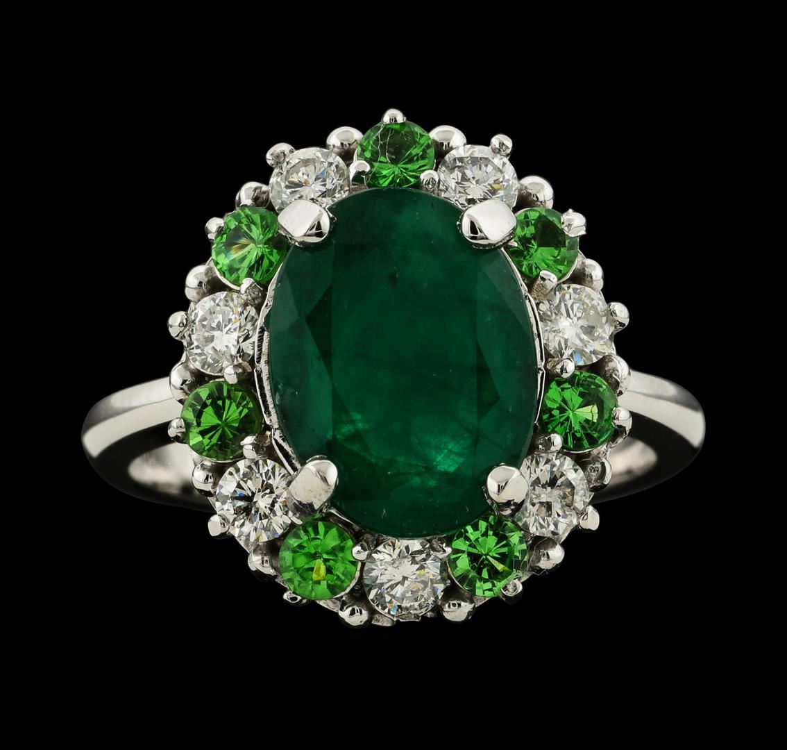 One ring : 14KT white gold weighing 4.92gm containing emerald with a total weight of 3.12ct, tsavorite weighing 0.57ctw and diamonds weighing 0.58ctw.