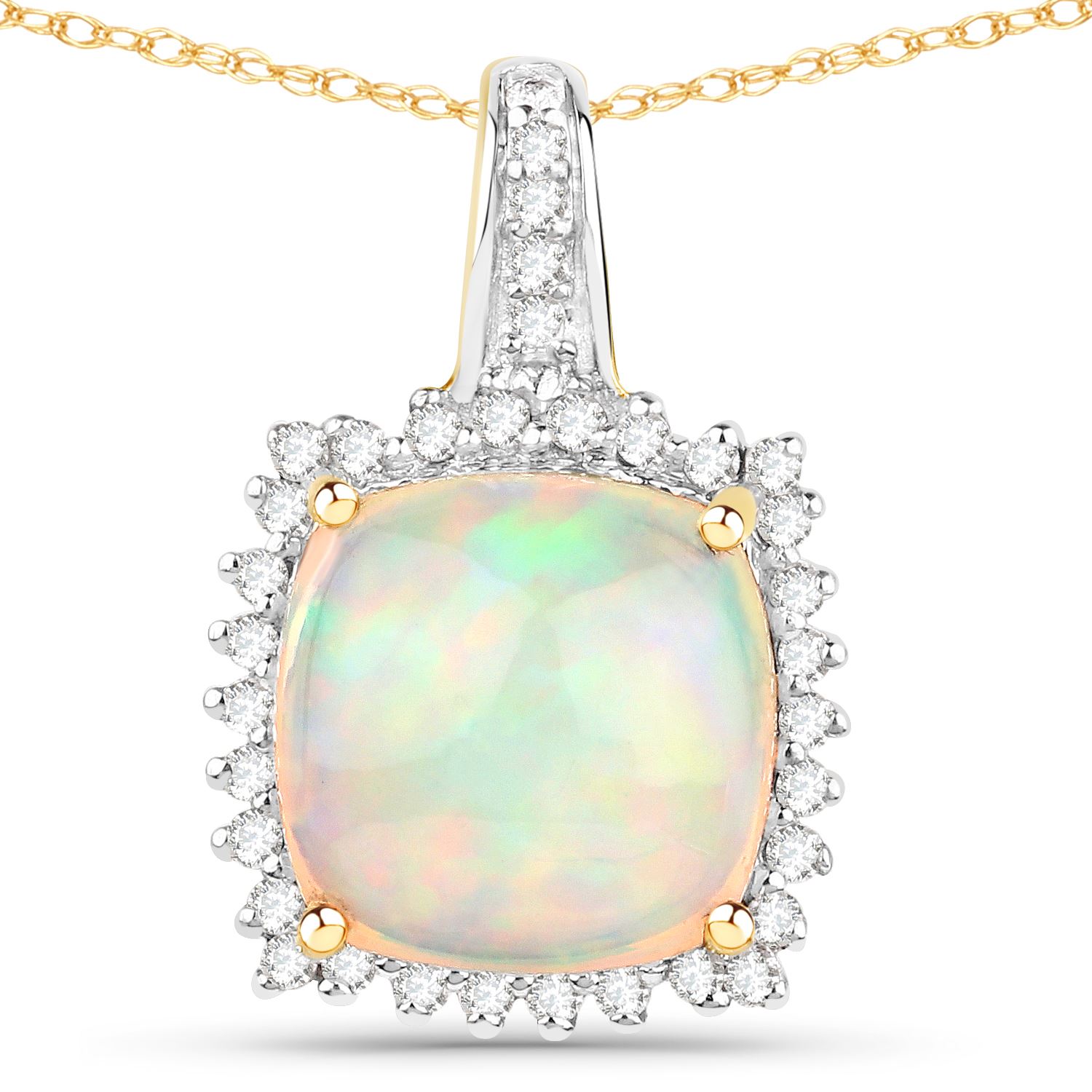 REF-70W4M ---- 3.12 ctw Ethiopian Opal & Diamond Pendant 14K Yellow Gold