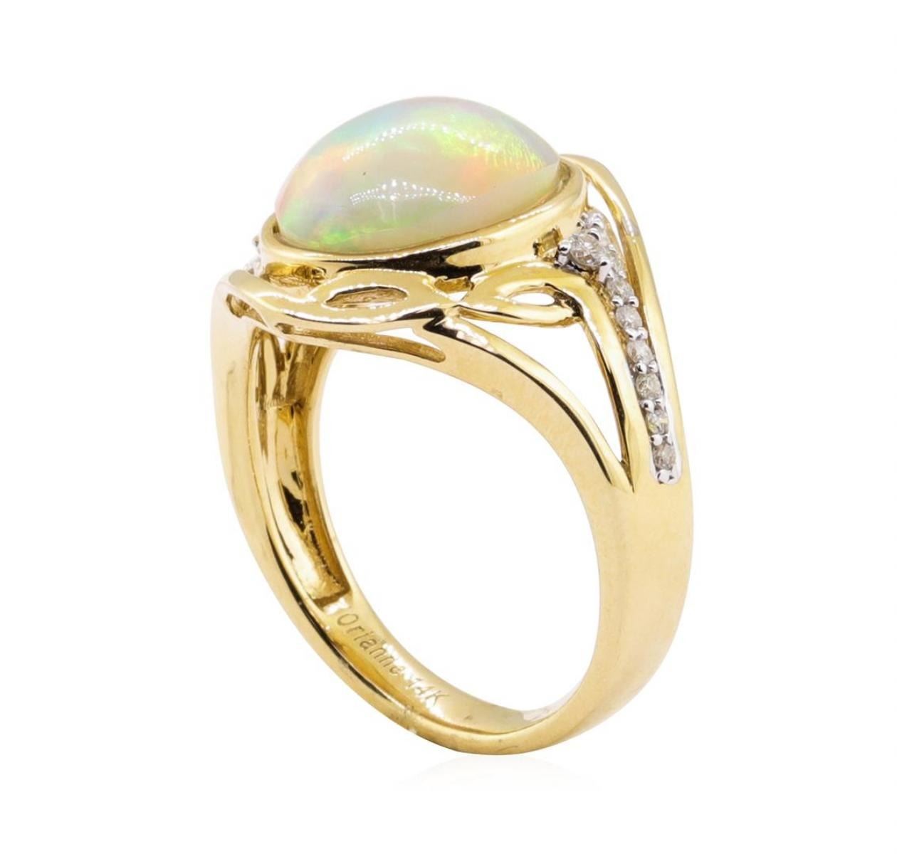One 3.12ct Opal and Diamond Ring - 14KT Yellow Gold. GLA certified. See Appraisal for more details. GLA Appraised.
