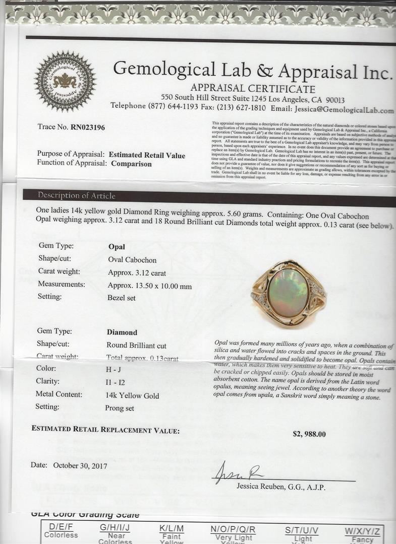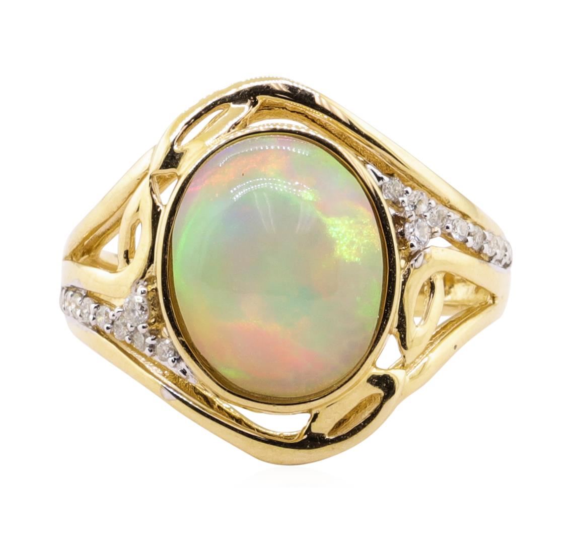 One 3.12ct Opal and Diamond Ring - 14KT Yellow Gold. GLA certified. See Appraisal for more details. GLA Appraised.