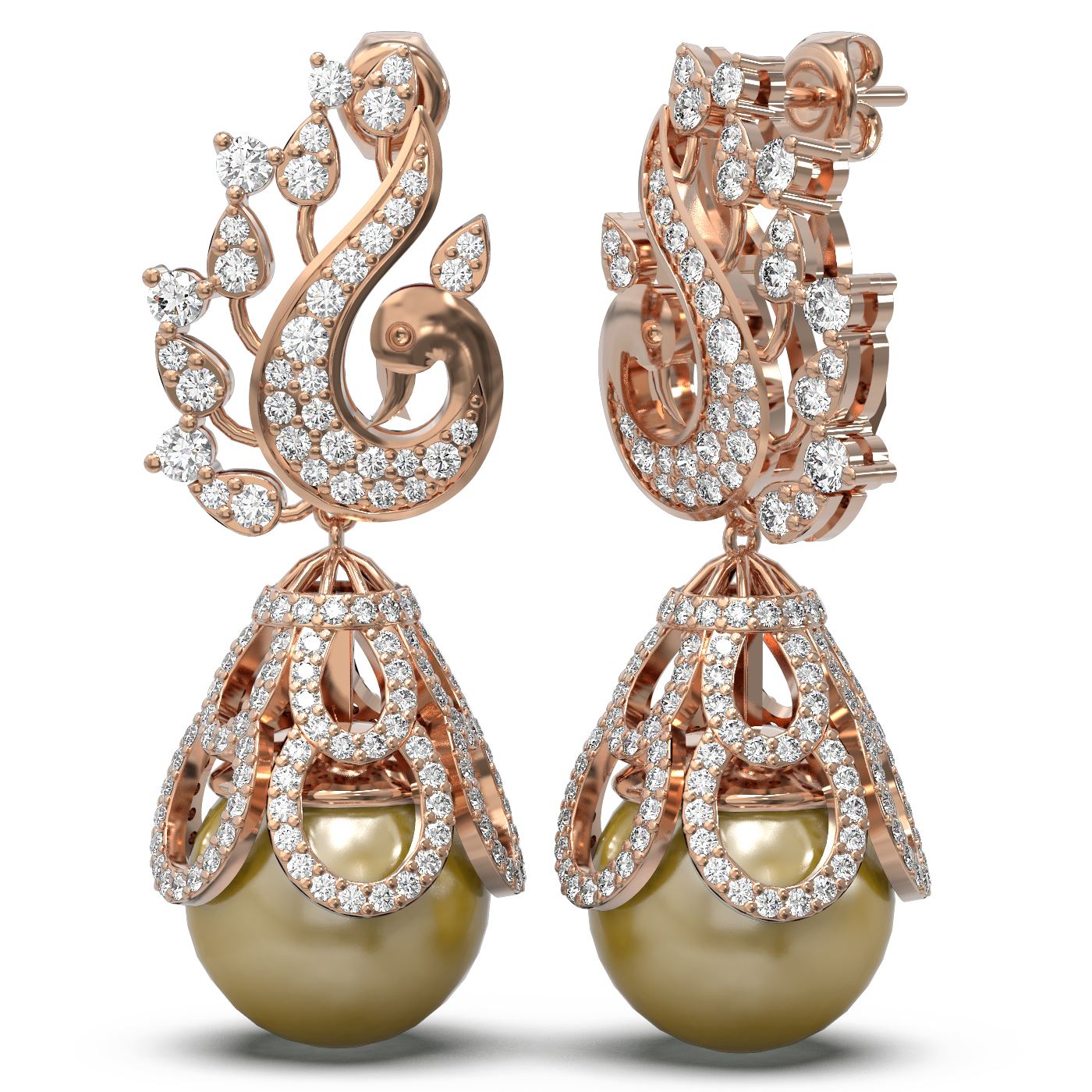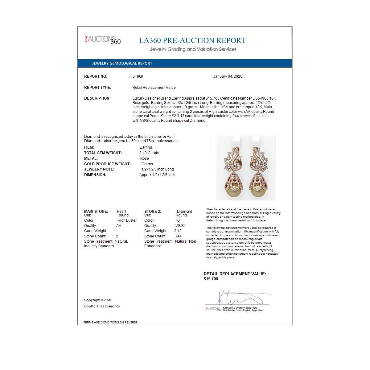REF-316G8W - SKU: 54966 ---- 3.13 ctw Diamond & Pearl Earrings 18K Rose Gold