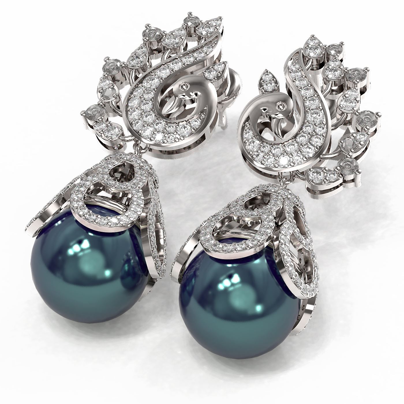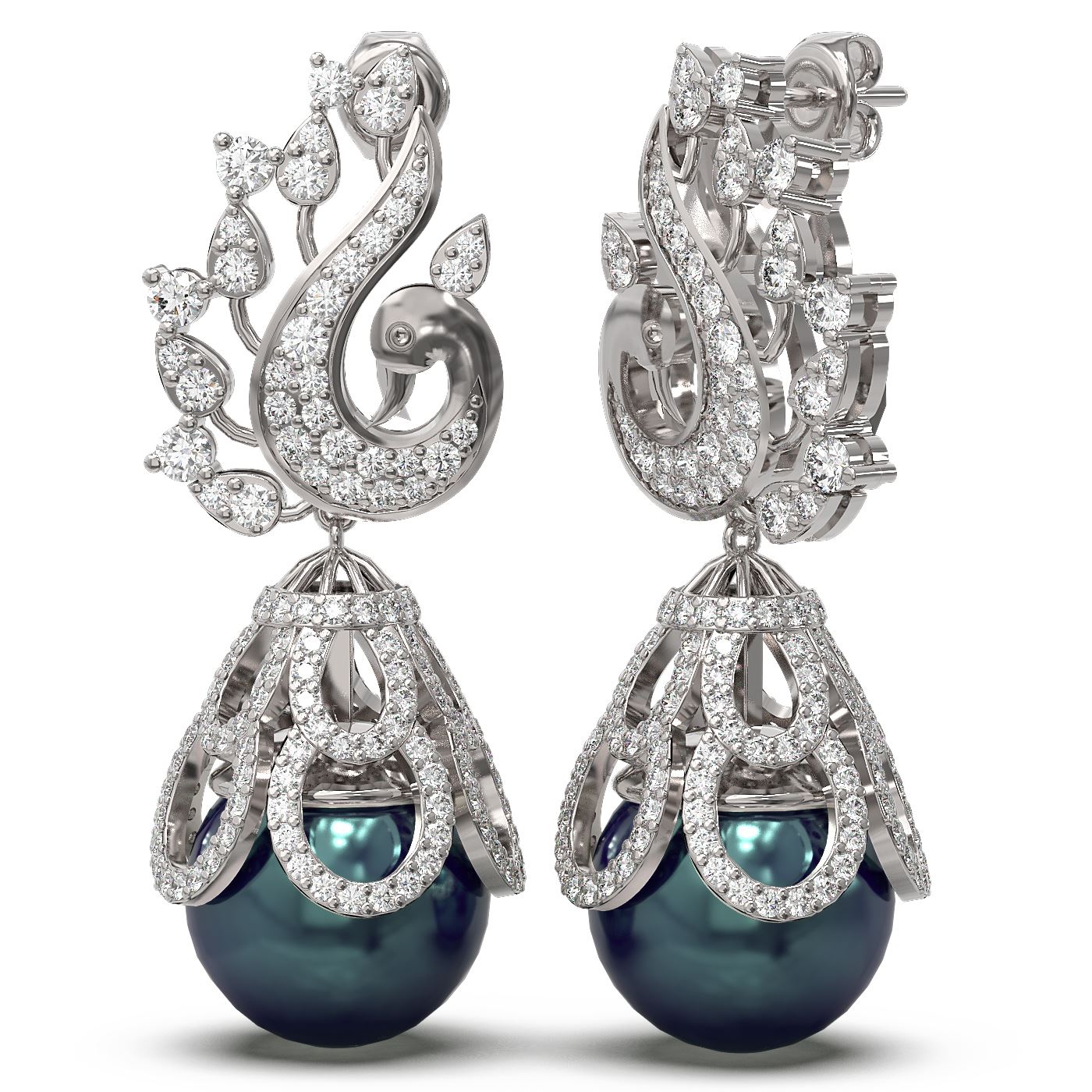 SKU: 54968 ---- 3.13 ctw Diamond & Pearl Earrings 18K White Gold