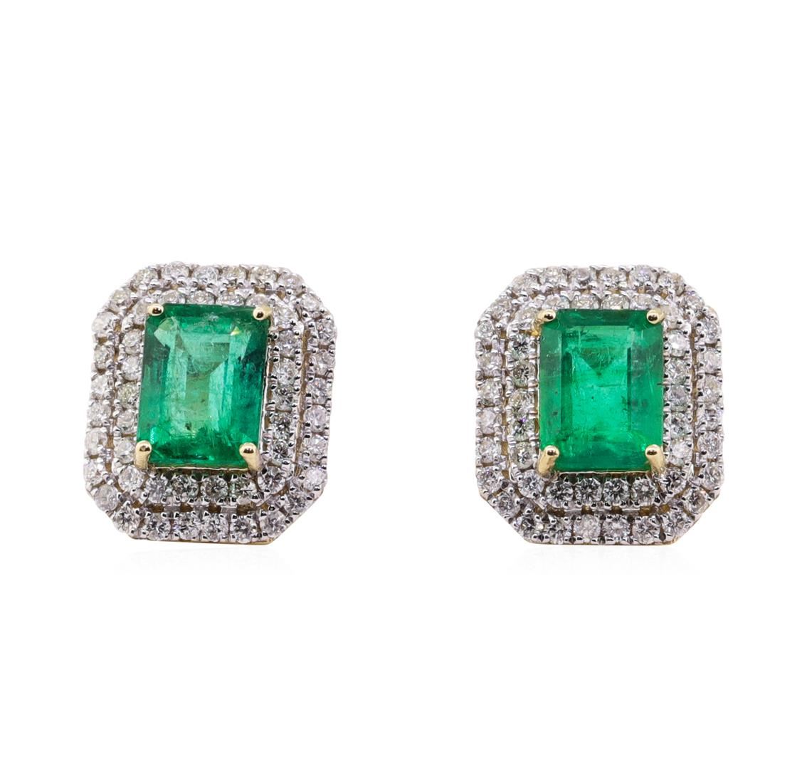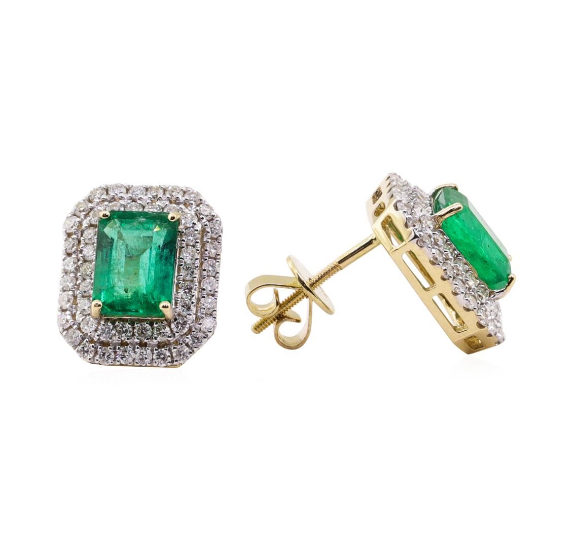 One 3.14ctw Emerald and Diamond Earrings - 14KT Yellow Gold. AIG certified. See Appraisal for more details. AIG Appraised.