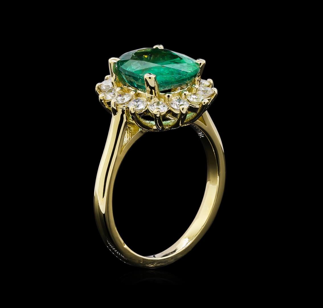 One ring featuring: 14KT yellow gold weighing 4.80 grams containing one emerald with a total weight of 3.14ct and diamonds with a total weight of 0.68ct.