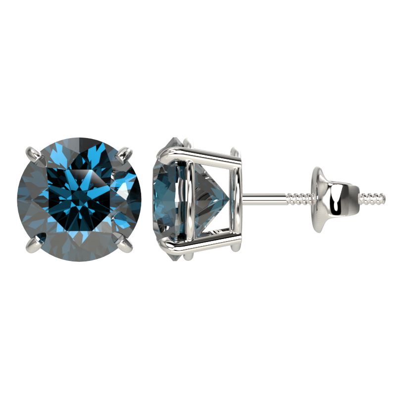 REF-379H3A -36706 ---- 3.15 CTW Certified Intense Blue SI Diamond Solitaire Stud Earrings 10K White Gold ---- Luxury Designer Brand Earring Appraised at $30,300 Certificate Number US36706 10k White gold, Earring Size is Larger, Earring measuring approx. Uniform, weighing in total approx. 2.5 grams. Made in the USA and is stamped 10k, Main stone 3.15 carat total weight containing 2 pieces of Intense Fancy Blue color with SI quality Round shape cut Diamond , Stone #2 carat total weight containing pieces of color with quality shape cut