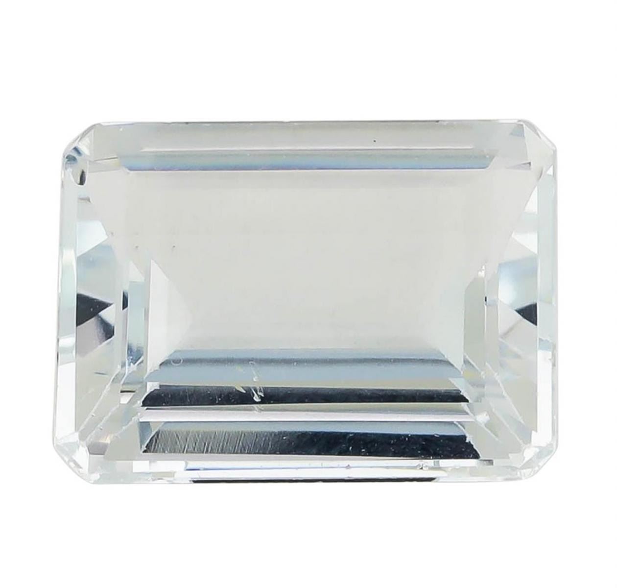One natural emerald cut aquamarine with an exact weight of 3.15ct., clarity is eye clean, slightly grayish greenish blue. Gemological Appraisals Services estimates the retail value at $1260 GAS Appraised.