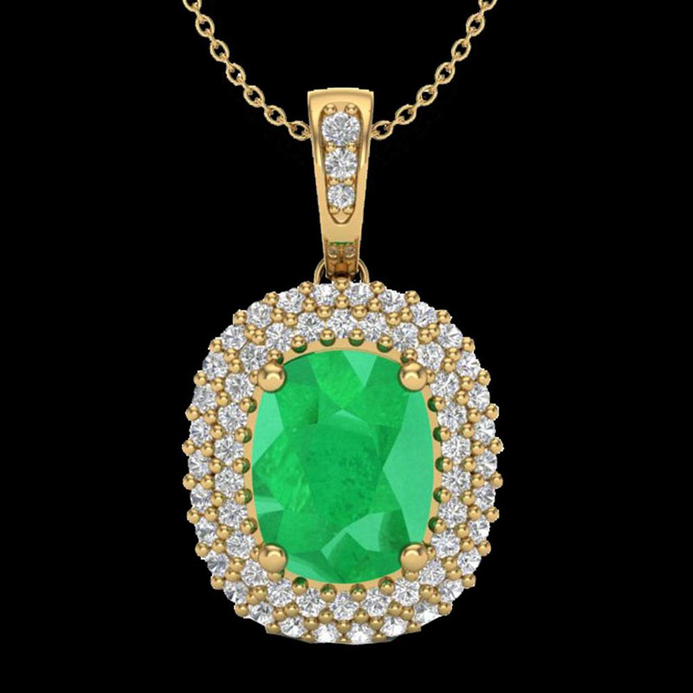 REF-90W9H - SKU: 20414 ---- 3.15 ctw Emerald & Micro Pave VS/SI Diamond Necklace 18k Yellow Gold