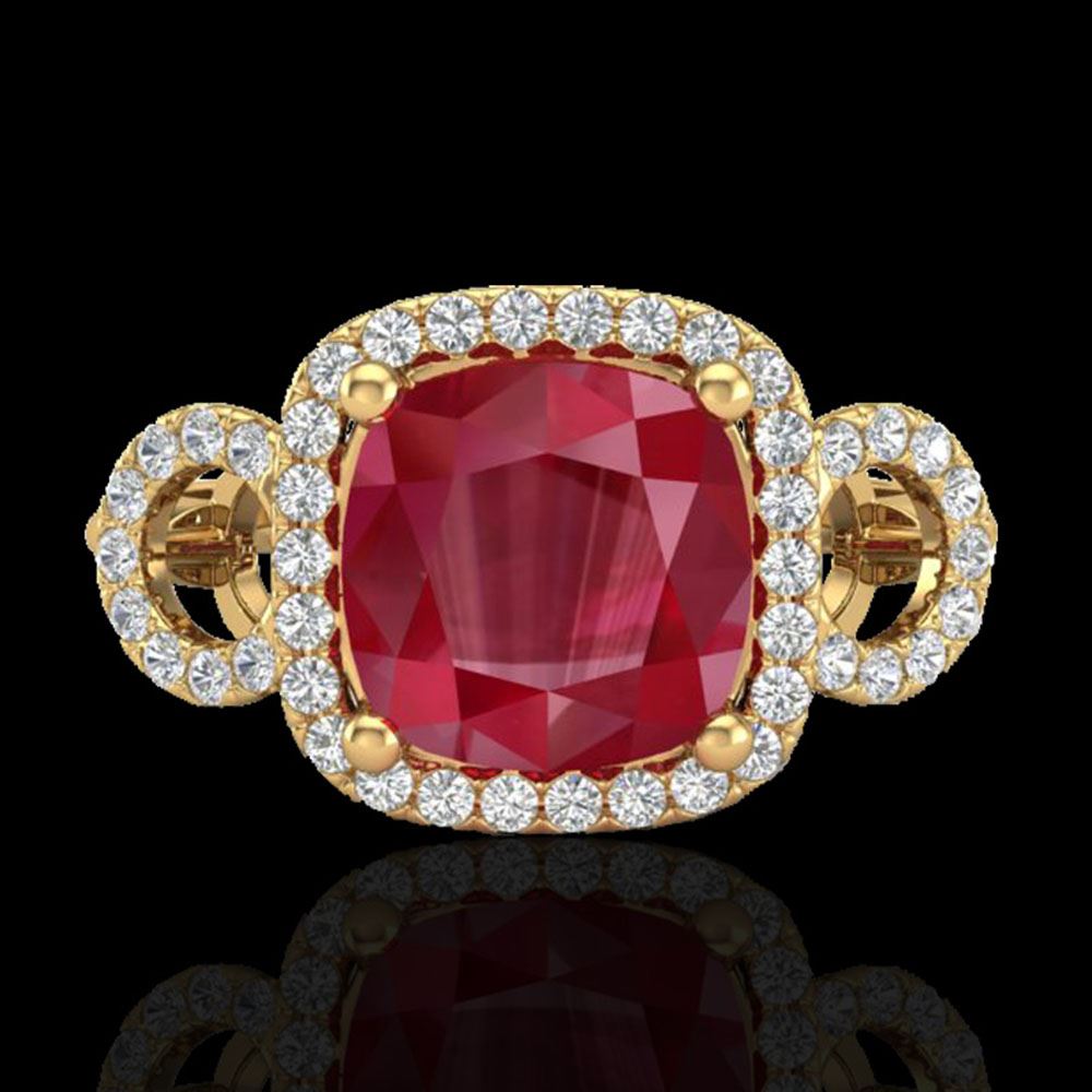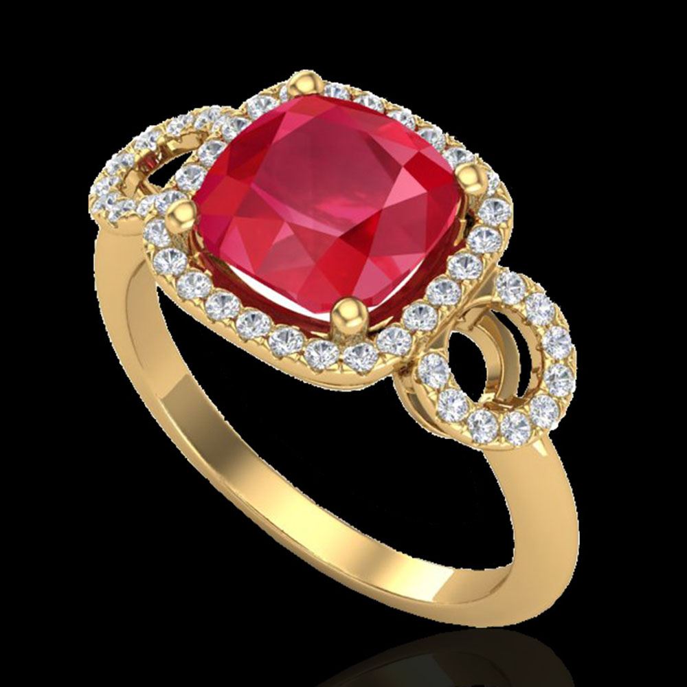 REF-76A8N - SKU: 23009 ---- 3.15 ctw Ruby & Micro VS/SI Diamond Certified Ring 18k Yellow Gold