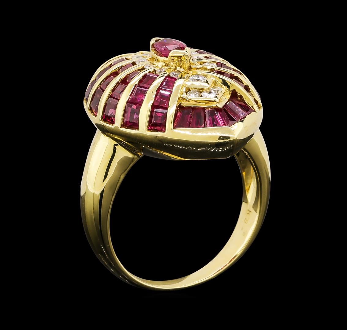 One ring featuring: 18KT Yellow Gold containing Ruby with a total weight of 3.15ct and Diamonds with a total weight of 0.24ct. Total Weight of Ring: 11.3 grams.
