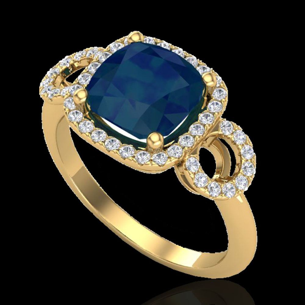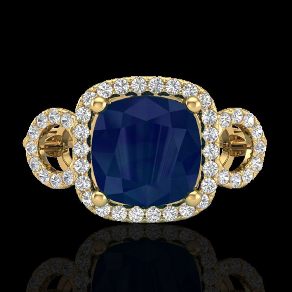 REF-76K8Y - SKU: 23011 ---- 3.15 ctw Sapphire & Micro VS/SI Diamond Certified Ring 18k Yellow Gold