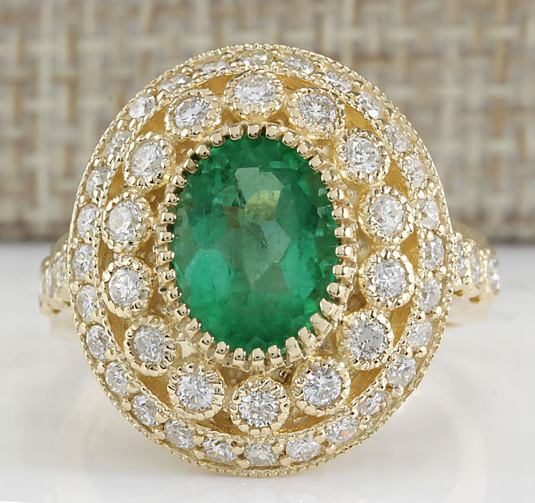 3.16 CTW Natural Colombian Emerald And Diamond Ring In 18K Yellow Gold