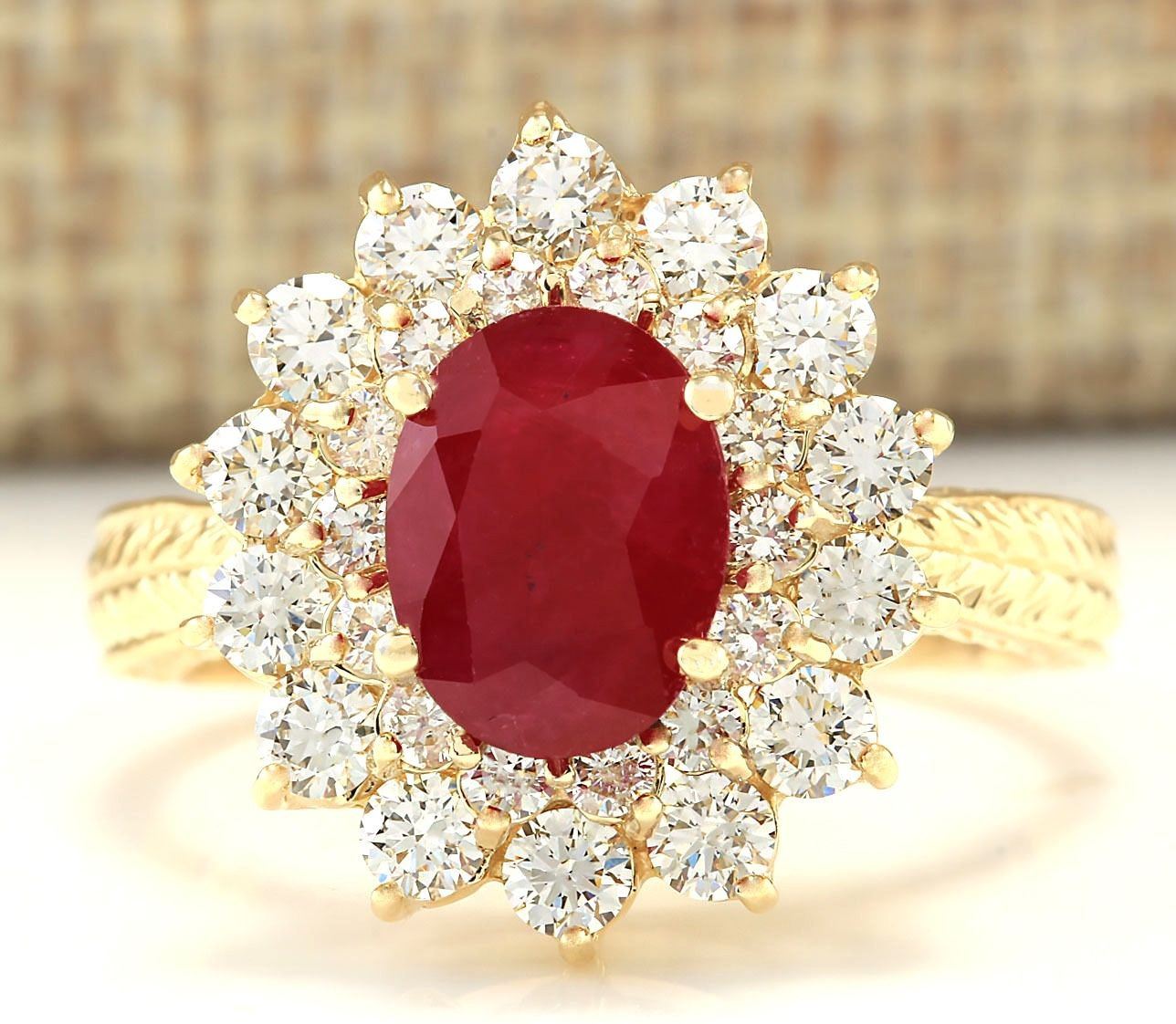 3.16 CTW Natural Ruby And Diamond Ring In 18K Yellow Gold