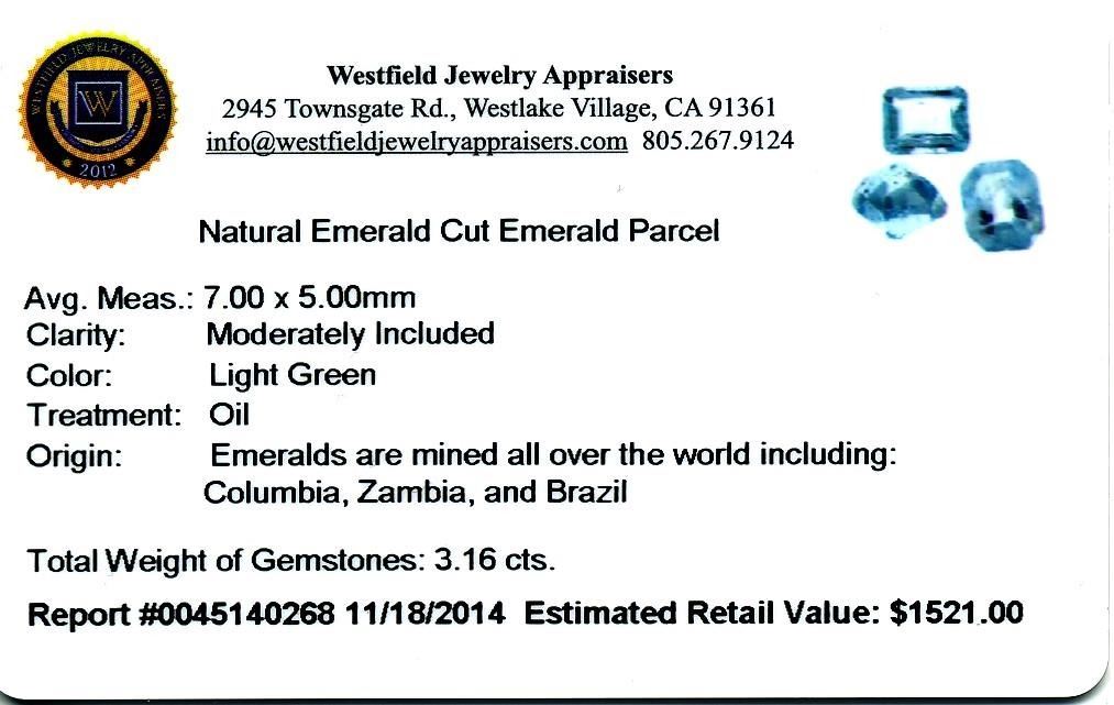 3.16cts. Natural Emerald Cut Emerald Parcel Westfield Appraised at $1,521.00.