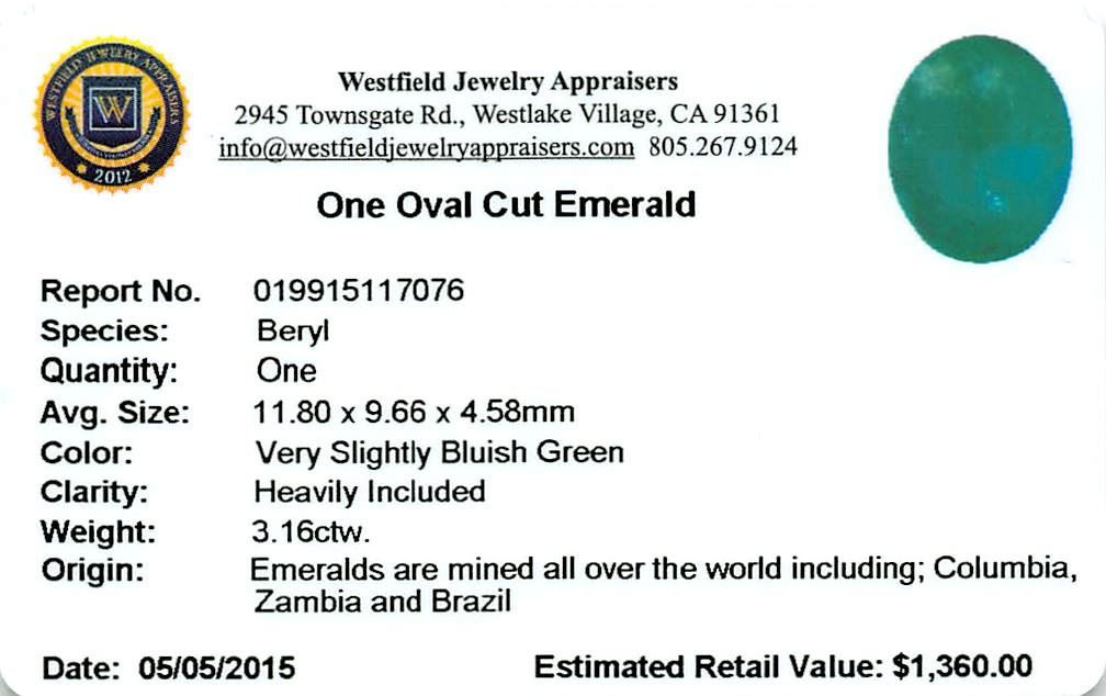 One 3.16 ctw Oval Emerald Parcel.