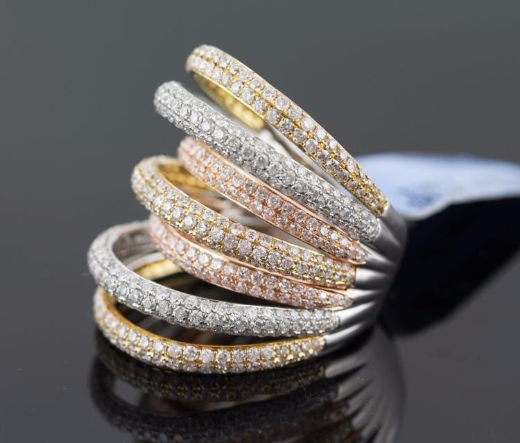 3.16 ctw Pave Set Diamond Overlapping Multi-Band RingRing 14K2-Tone10.18g|**Size:6.75 10.18GMS,526RD-3.16CT