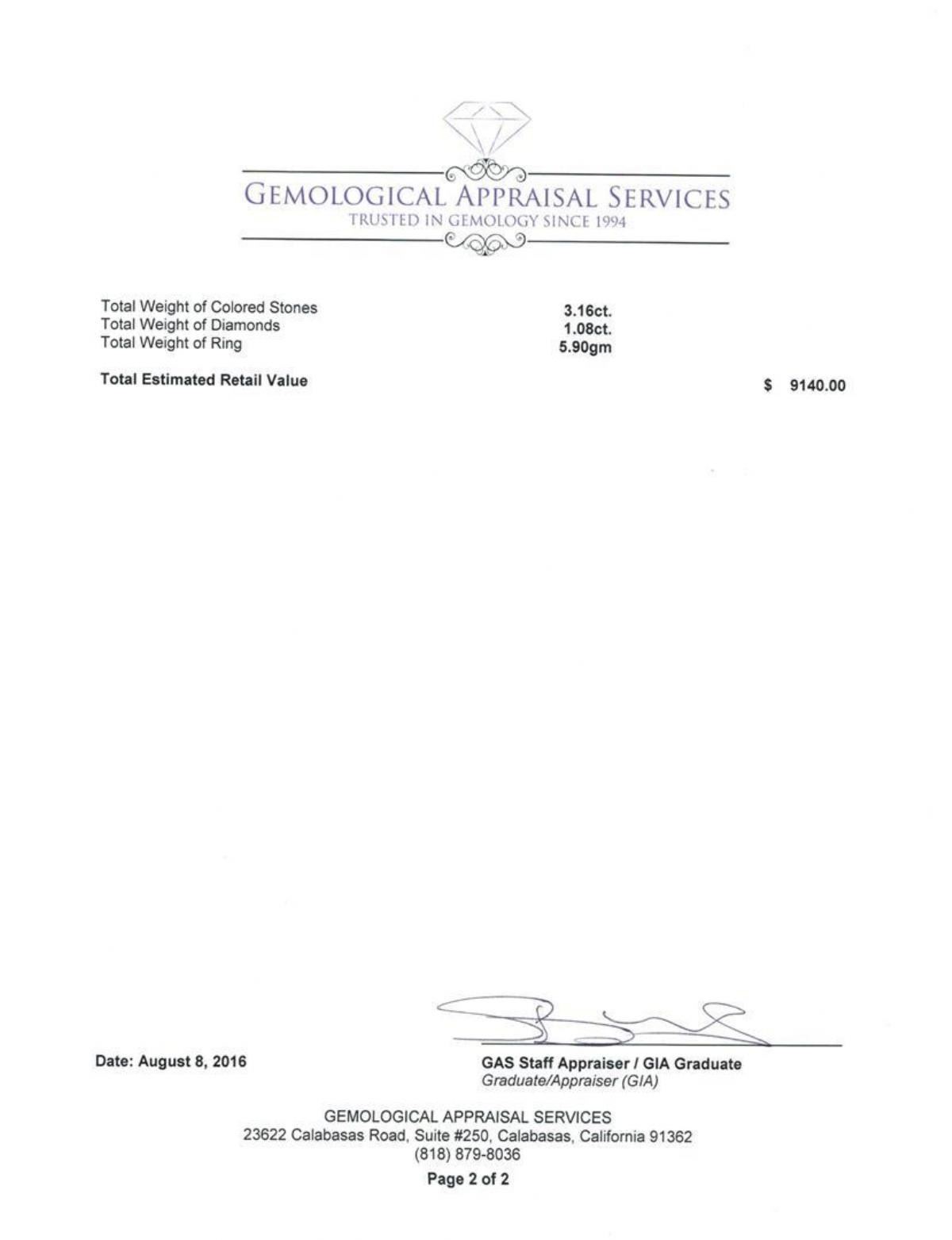 Regarding Appraised Jewelry, Watches and Loose Stones - SAA sends most jewelry, watches, accessories and loose stones out to a third-party for appraisals. All such lots are sold AS IS and may have been worn, been previously repaired, altered, customized (including having been modified with after-market stones or had the bezel changed in its entirety on certain jewelry or watches), or been embellished. For purposes of our actions, the terms custom, modified, or after-market may be used interchangeably. Such wear, repair or changes may display varying levels of evidence. The bidder hereby acknowledges that the absence of any reference to the condition of a lot does not imply the absence of wear, repairs, customization, or defects. While SAA makes every effort to call to the attention of bidders the use of after-market parts in jewelry and watches sold, the use of such parts or stones shall not constitute a warranty or representation that the items are original in their entirety. These modifications, customizations, and alterations may impair the ability of the original manufacturer to repair such item or certify the item as authentic All descriptions and statements related to such lots, including measurement, authorship, source or origin, or other aspects are qualified opines and do not constitute a warranty or representation, and are provided for identification purposes only. Not all Jewelry, watches or loose stones are appraised, and the appraisals are provided for bidders only in certain instances at the discretion of SAA. Our appraisals are conducted by independent third-party appraisal firms. Such firms may be certified GIA Gemologists or have education in the industry or alternative certifications. Appraisals should be used for verification of gemstone and/or metal weight, size, and grade only, not actual value for resale or insurance purposes. Appraisal value should be not considered for actual value, as price varies greatly from retail locations and other merchants in different geographic locations. All Items auctioned by SAA should not be purchased with a view or expectation toward resale for appraisal price given, or to make a profit. The ultimate value for which an item can be resold may vary drastically from the appraisals listed by SAA. All dimensions and weights of such lots are approximate and are consistent with standards and practices in the industry. Condition reports are provided as a service to prospective bidders. Bidders should note that such descriptions are not warranties and that watches may need general service, change of battery or further repair work for which the buyer is solely responsible. Certain watch bands from protected species of animals (i.e. alligator, crocodile) and items made of ivory and tortoise may be subject to restrictions in certain countries.