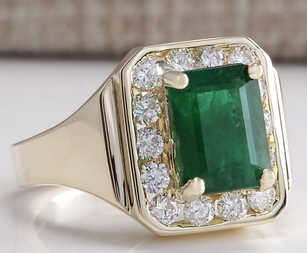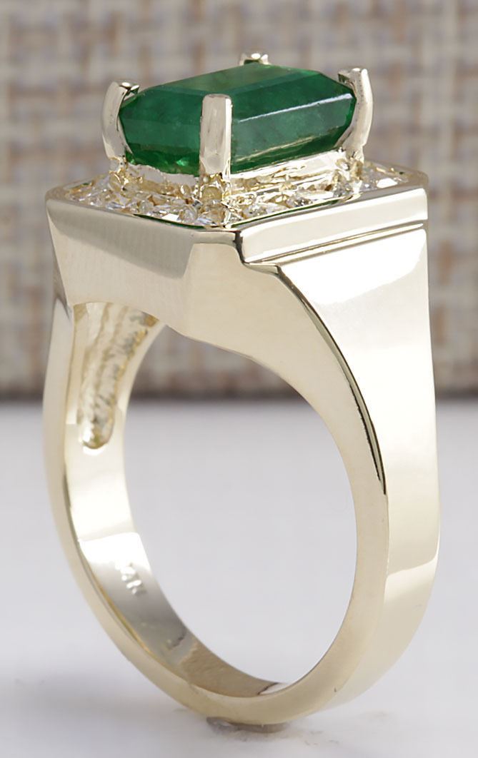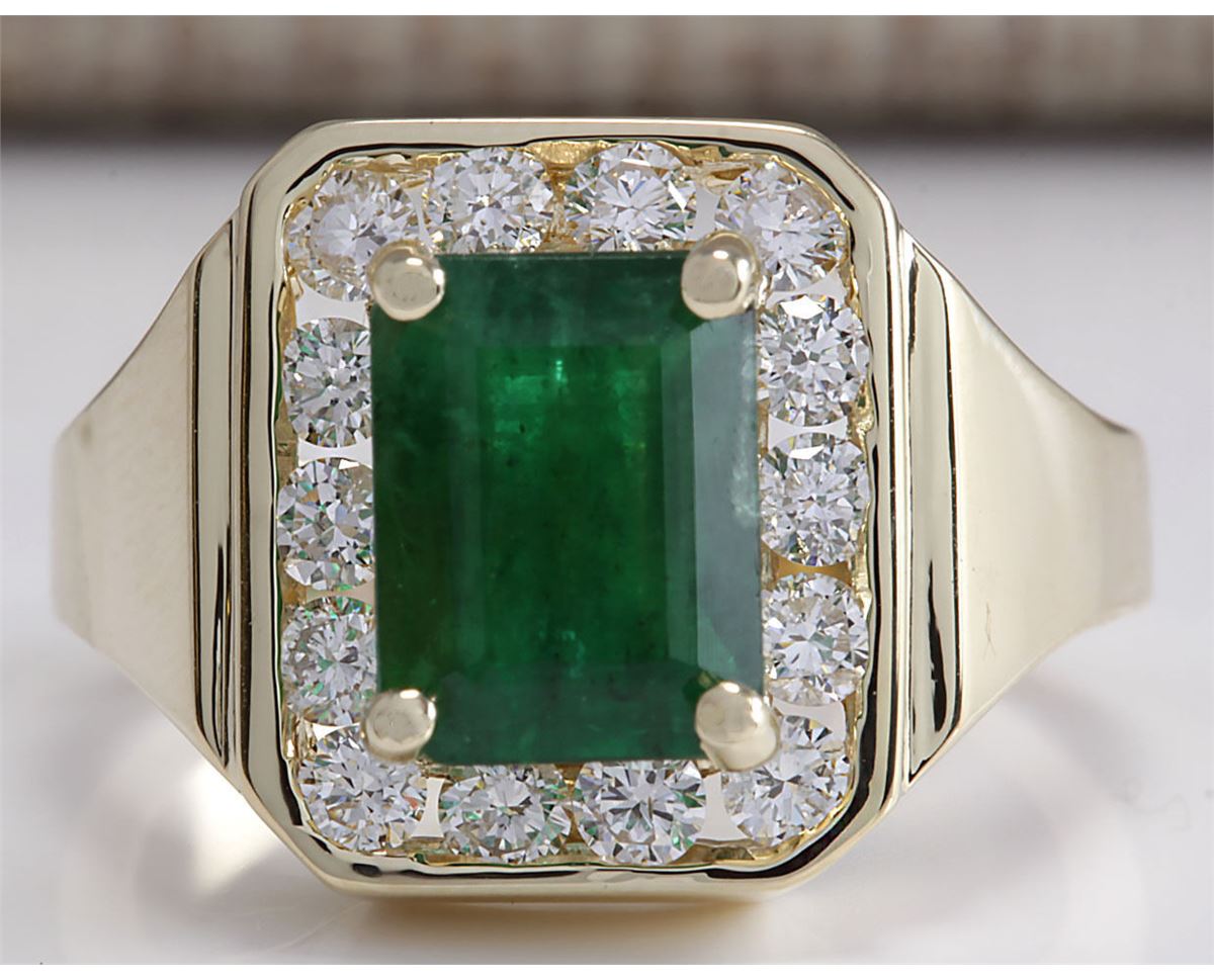 Stamped: 14K Ring Size: 6.75 Total Ring Weight: 8 Grams Diamond Weight: Total natural diamond weight is .80carat. SI1-SI2 clarity / G-H color Gemstone Weight: Total Natural Emerald Weight is 2.36ctw (Measures: 8.97x6.79mm) High End Gemstone Face Measures: 13.94x11.93mm Main stone color: Green [SKU:702878]