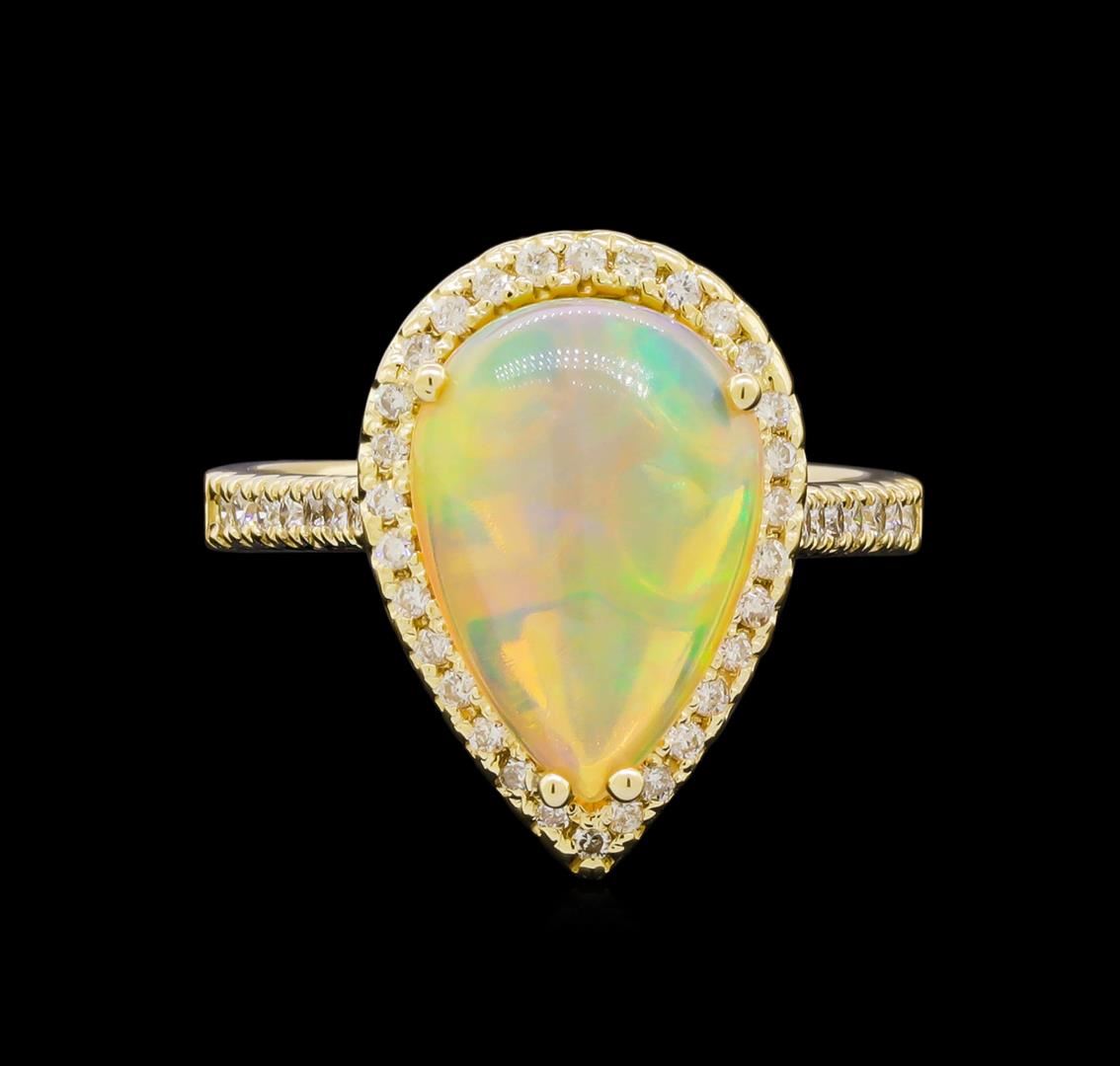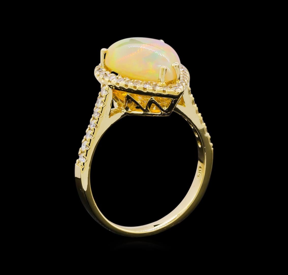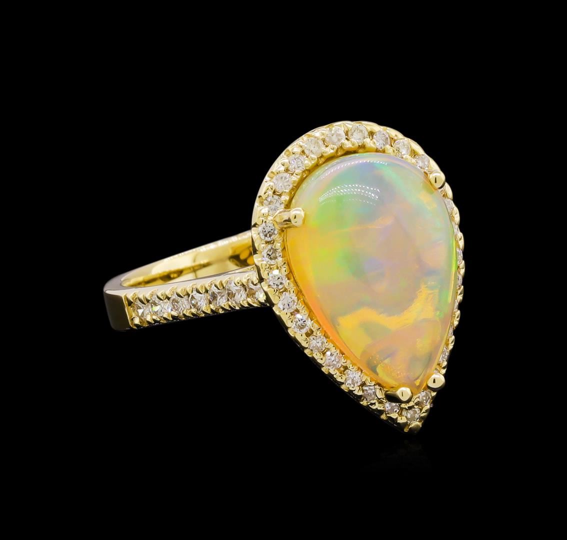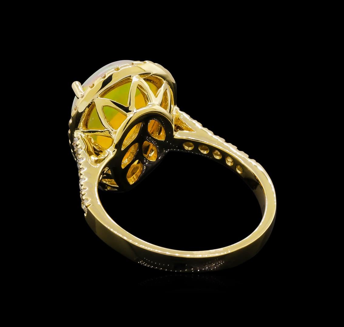 One ring featuring: 14KT yellow gold weighing 4.76 grams containing one opal center stone with a total weight of 3.17ct and diamonds with a total weight of 0.40ct.