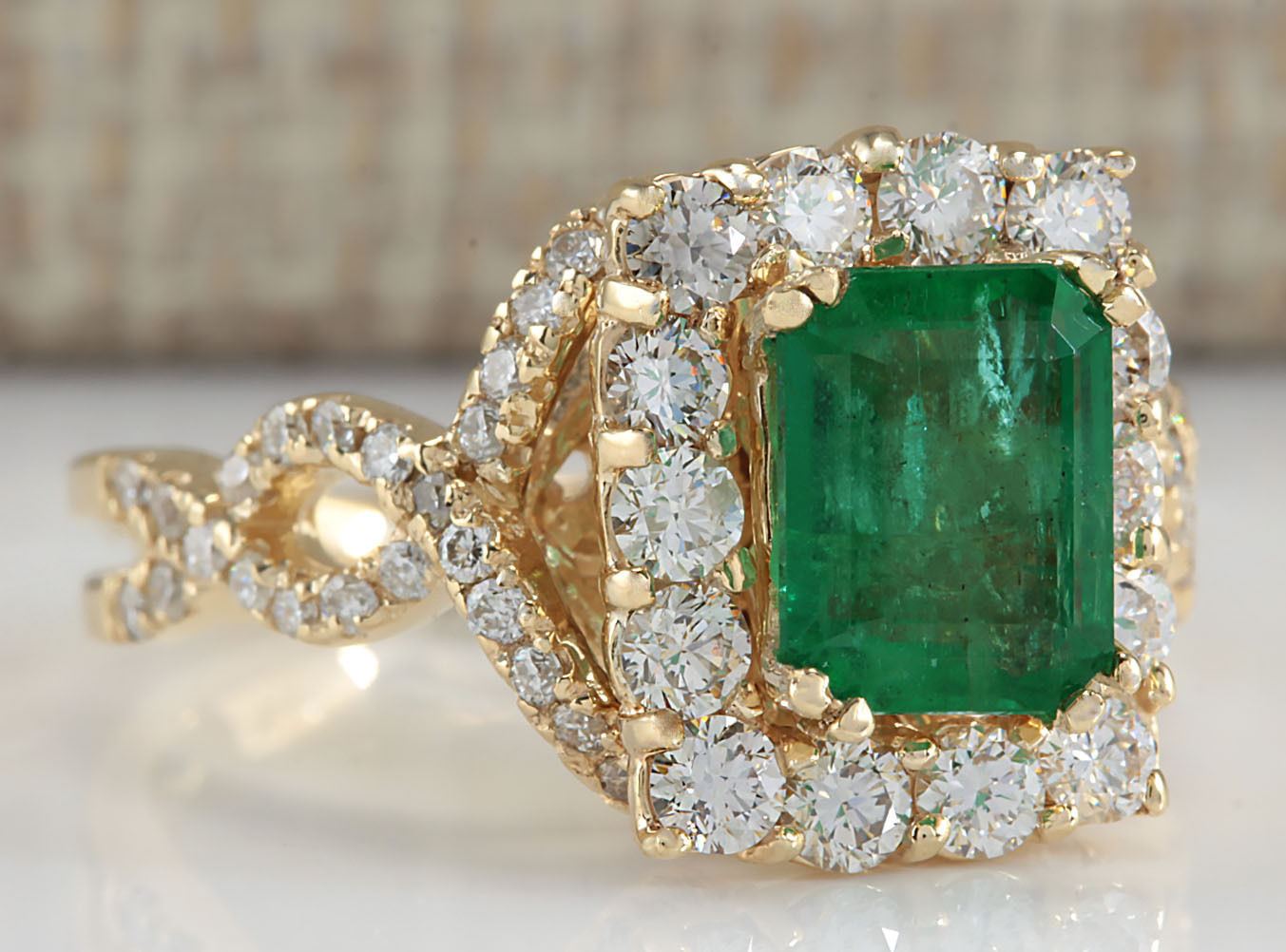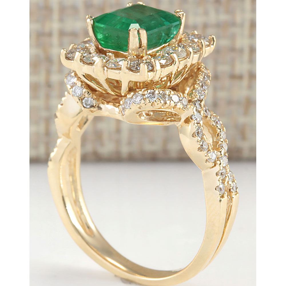 3.18 CTW Natural Emerald And Diamond Ring In 18K Yellow Gold