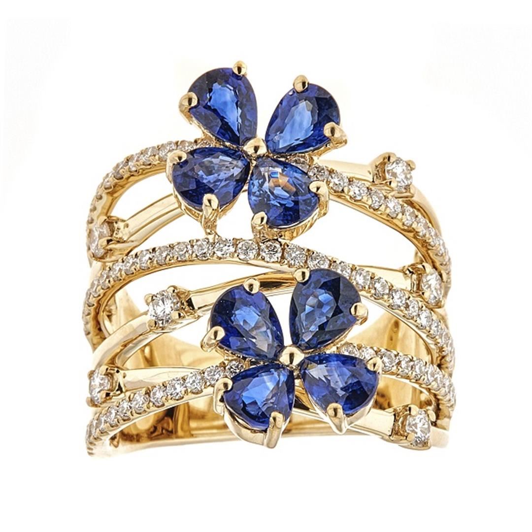 One Ring : 18KT yellow gold weighing 11.18gm containing eight blue sapphire stones with a total weight of 3.18ctw and side diamonds weighing 0.83ctw.
