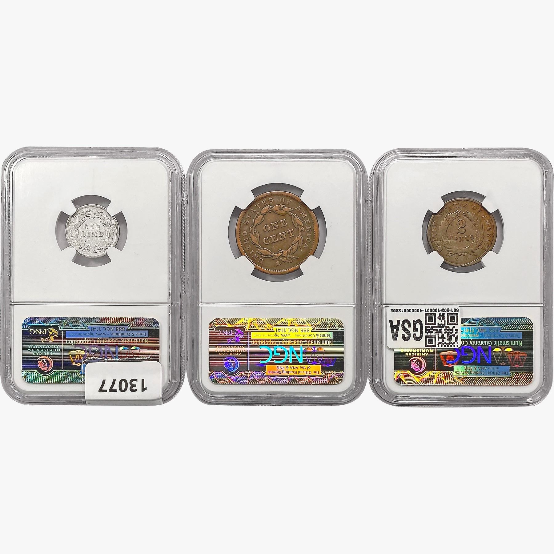 [3] 1842-1889 1 10C, 1 LC, 1 2C NGC Genuine
